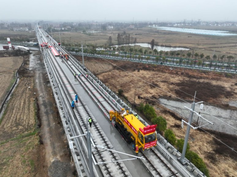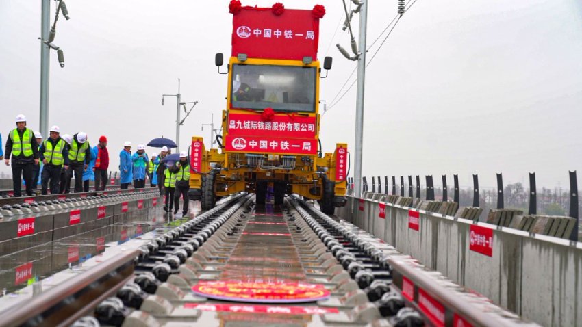 2月15日,随着一对500米长钢轨精准铺设至京港高速铁路九昌段(以下简称昌九高铁)抚河特大桥接轨点,标志着昌九高铁南昌东站至何家线路所先行开通段铺轨贯通,南昌东站正式接入京港高铁昌赣段,杭昌高铁与京港高铁实现快速互联互通。