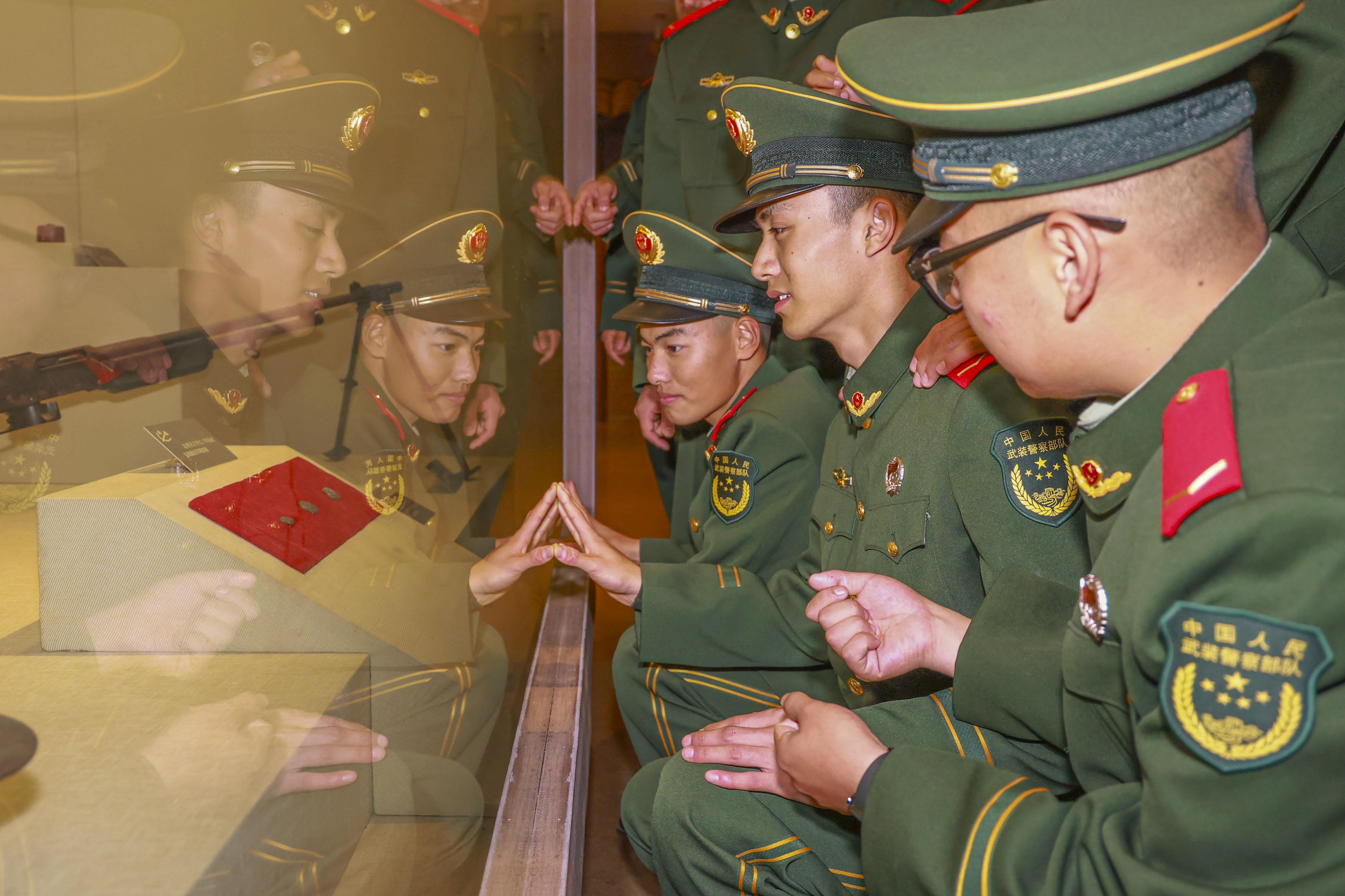 “五角星代表共产党,斧头代表工人,镰刀代表农民……”在“镇馆之宝”红八军帽徽前,新兵们纷纷驻足,认真聆听解读,思绪瞬间被拉回到激情澎湃的革命岁月。