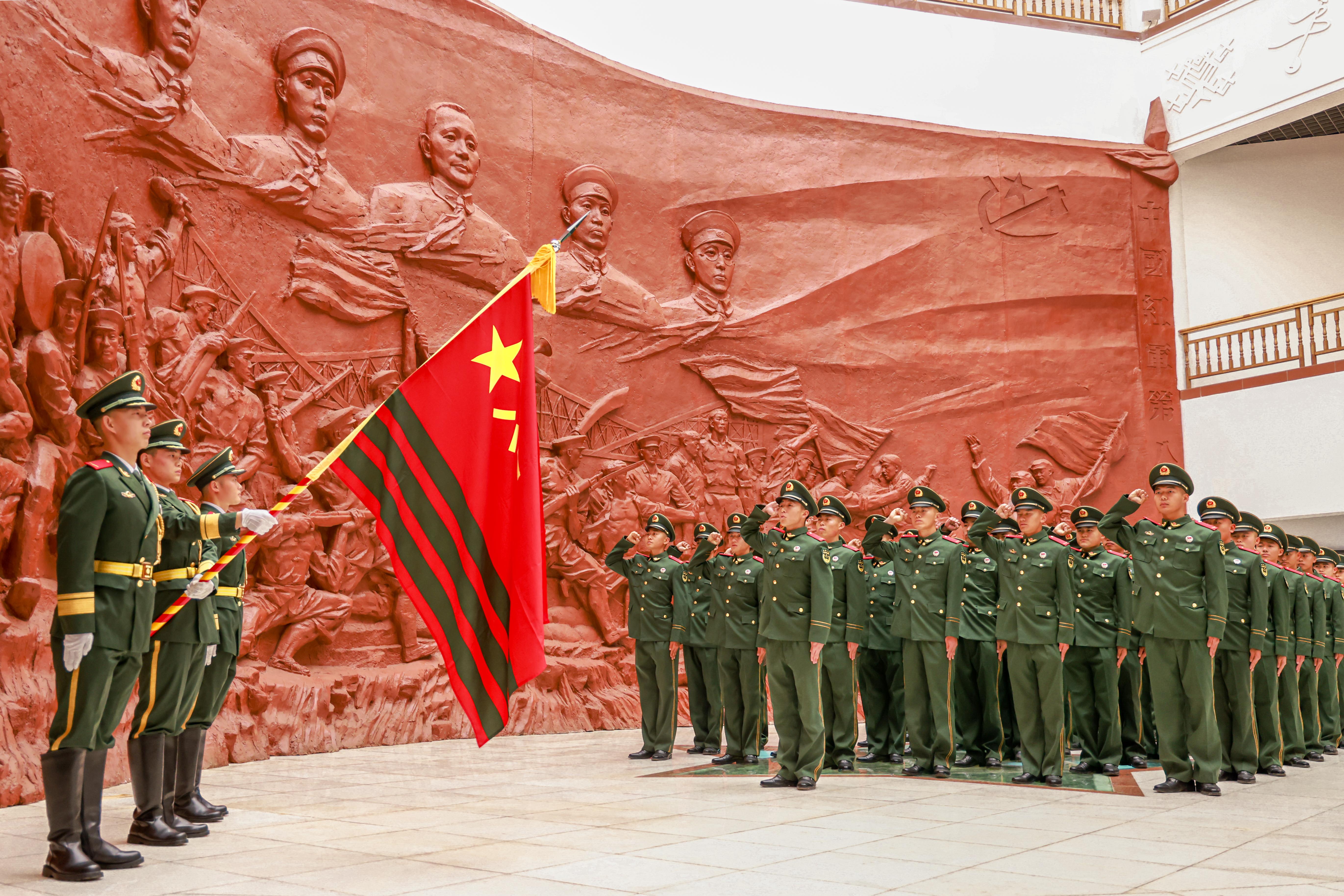 “我是中国人民武装警察,我宣誓……”在龙州起义浮雕前,新兵们整齐列队,面向鲜红的武警部队旗,庄严举起右拳,重温入伍誓词。铿锵有力的誓言在纪念馆内回荡,令新兵们更加切身感受到自身肩负的使命责任。