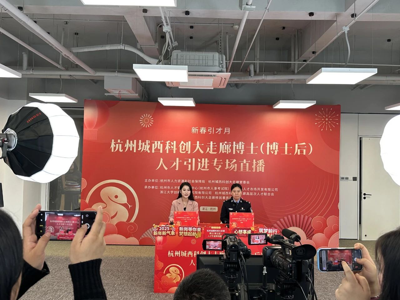 2月19日,由杭州市人力资源和社会保障局、杭州城西科创大走廊管委会共同举办的新春引才月——杭州市博士(博士后)人才引进专场直播举行。此次直播携高能级科创平台和成果转化平台“云上揽才”,共发布岗位超600个,总浏览量超30万人次。