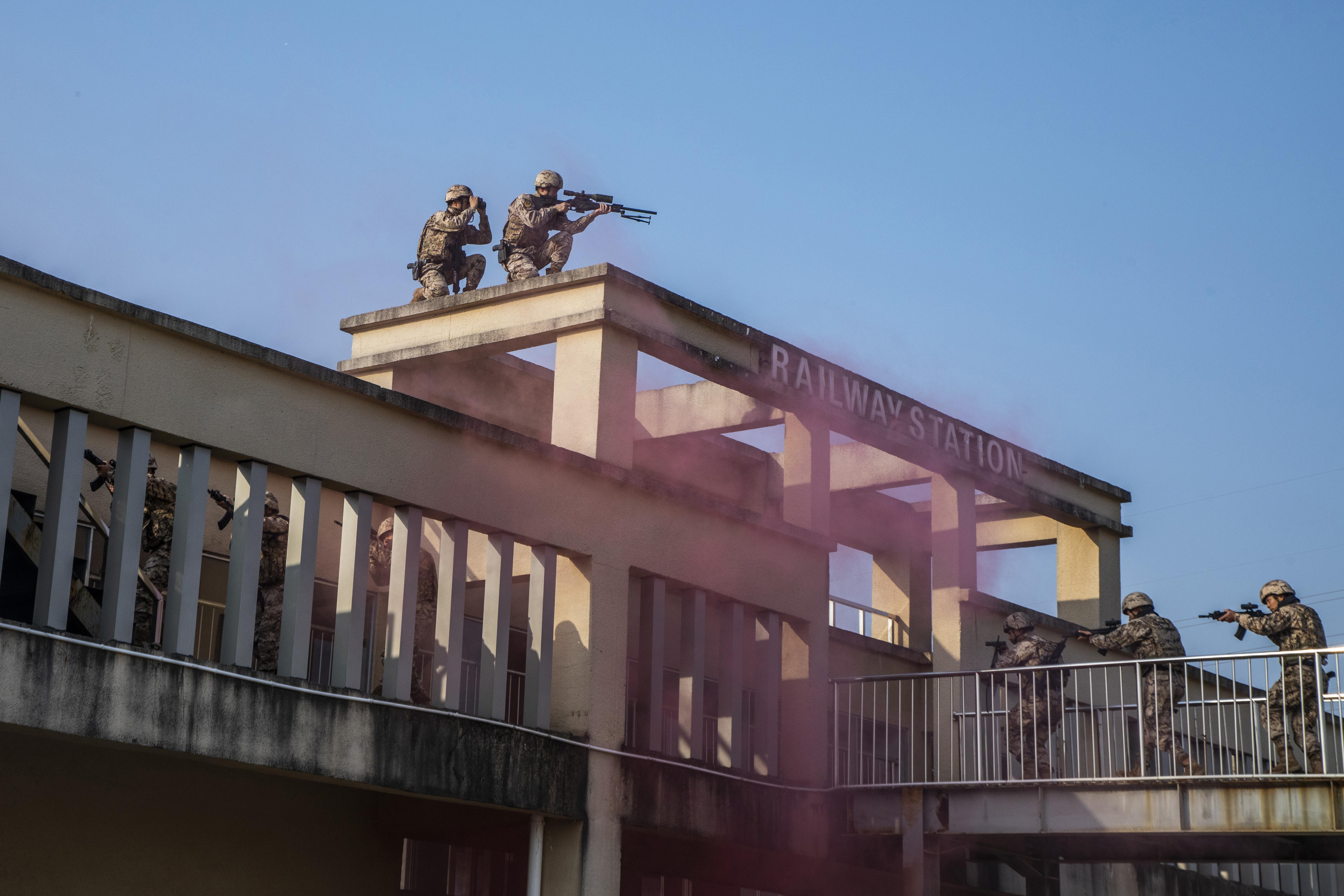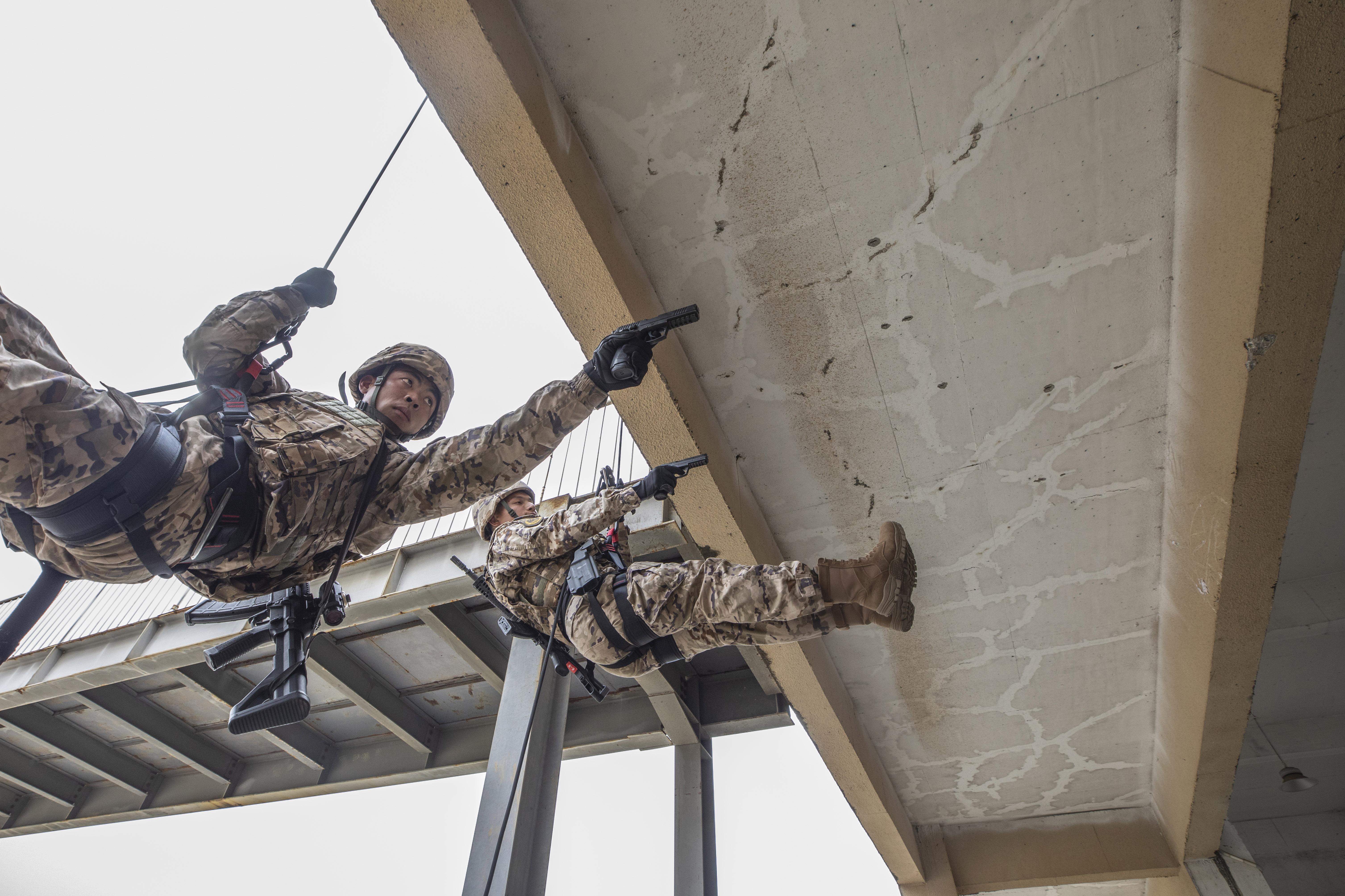 为提升应对城市街区恐怖袭击等突发事件的能力,近日,武警广西总队桂林支队在某模拟街区开展了一场实战化的反恐演练,全方位检验特战队员的综合素质和专业能力。