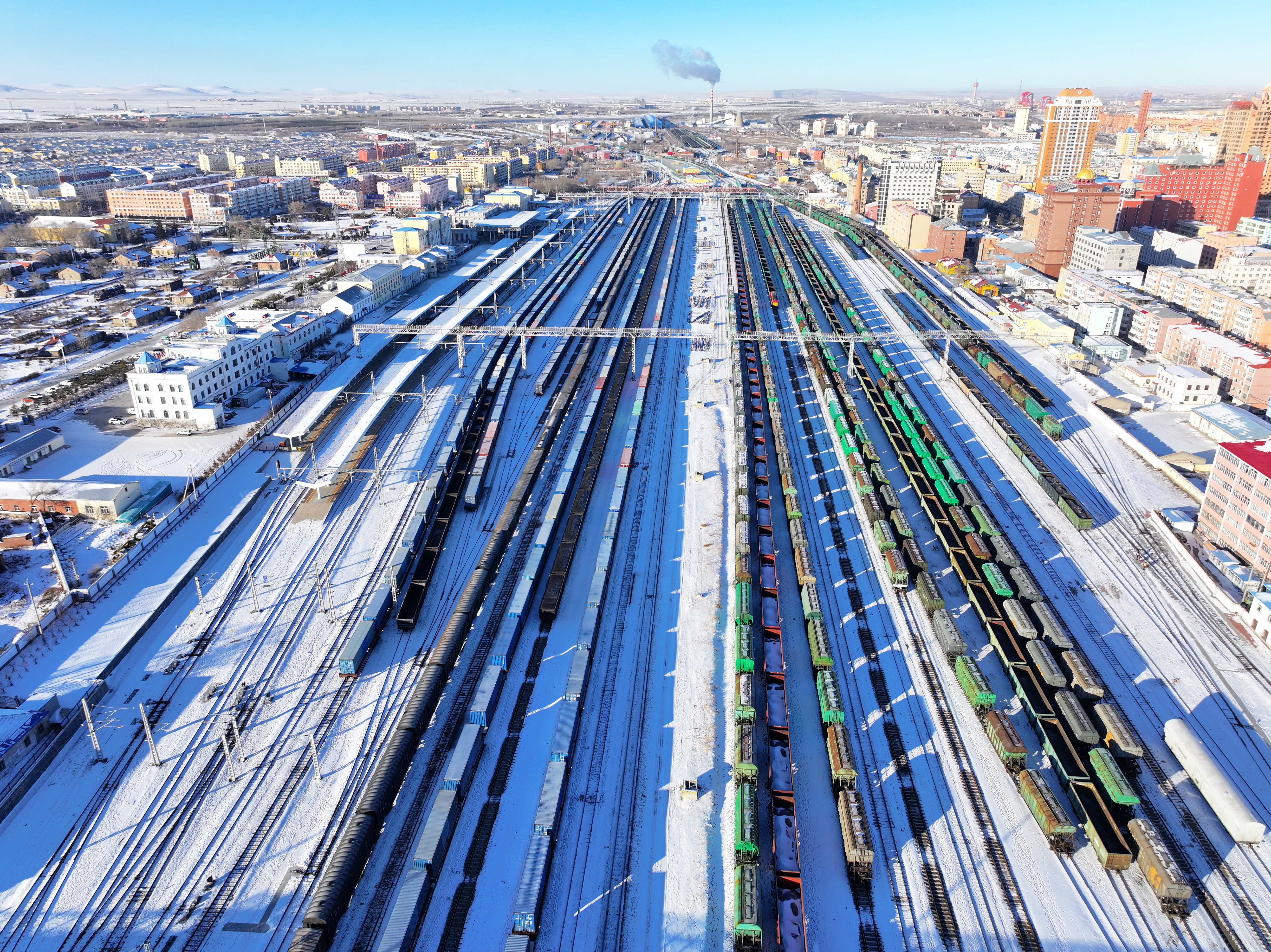 满洲里铁路口岸不断优化完善运输组织办法,在车流组织、装卸组织、计划编制、重点作业联系报告等方面建立系统的口岸运输管理机制,实现站区运输组织无缝衔接,对跨境货物列车实行整列、成组取送,最大限度减少调车作业钩数,压缩调车作业时间,加快宽轨列车周转速度,实现货物列车“到、解、换、编、发”全过程畅通,为接发进出口货物列车创造条件。