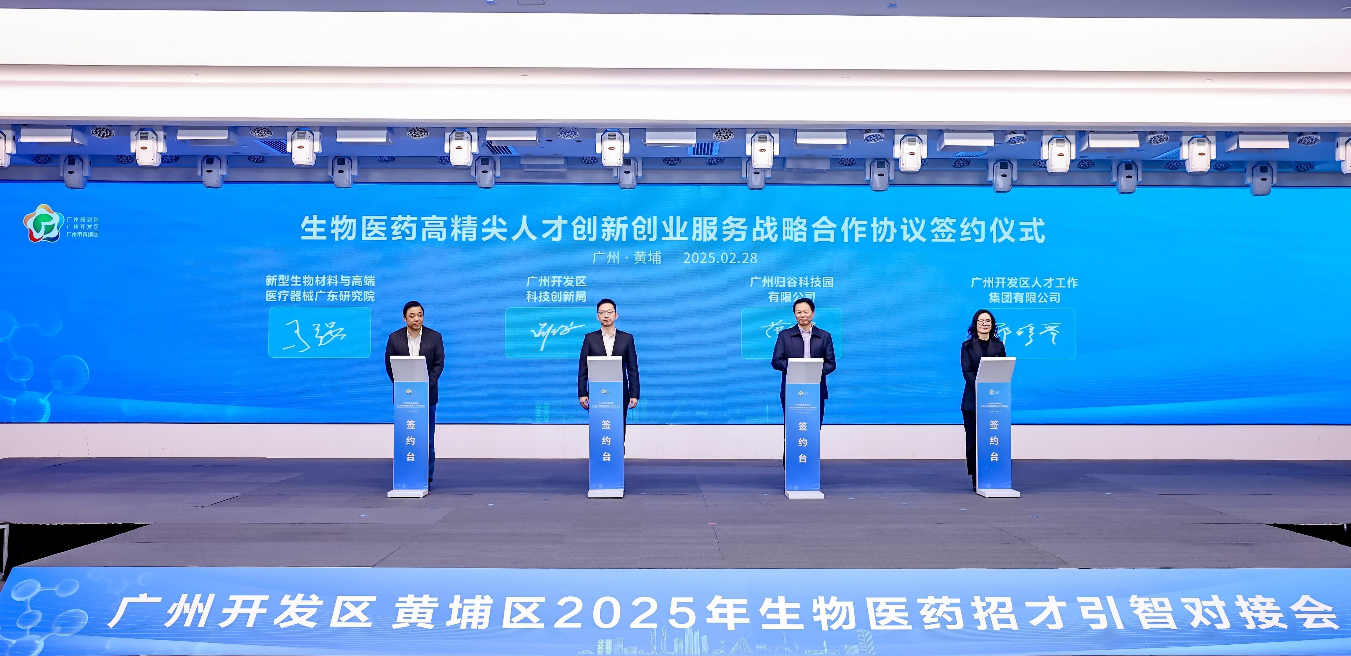 2月28日,广州开发区、广州市黄埔区2025年生物医药招才引智对接会在广州归谷科技园举行。当天,广州开发区、广州市黄埔区2025生物医药招才引智工作正式启动。