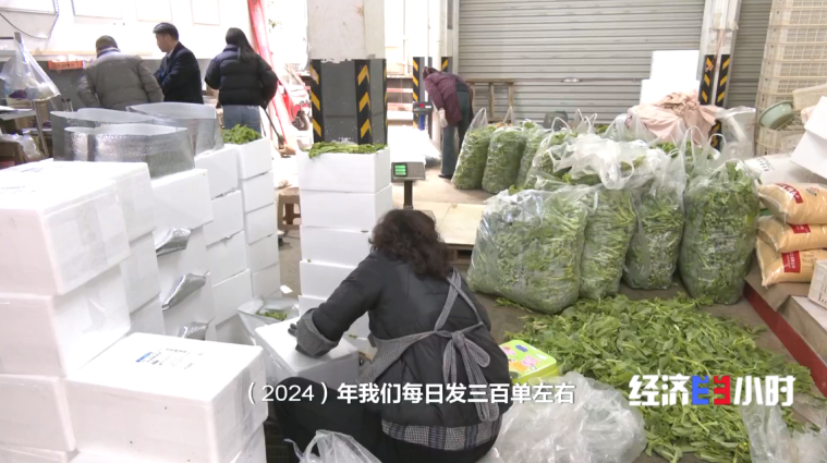 “村播”队伍的壮大带火了附近街道的物流快递点,一些村民忙着打包发货。村民张朝维承包了150亩地,主要种新鲜时令蔬菜。