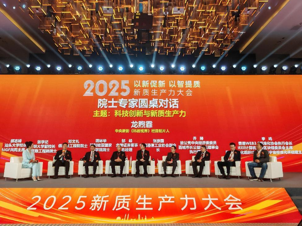 在题为“科技创新与新质生产力”的院士专家圆桌对话环节,汕头大学校长郝志峰、深圳大学副校长、欧洲科学院院士张学记,俄罗斯工程院院士邓文礼,玻利维亚国家科学院院士蒋林华等专家出席。与会嘉宾一致认为,科技创新和智能驱动是未来经济发展的关键驱动力,必须通过“以新促新、以智提质”战略,加速实现产业升级和经济结构优化。