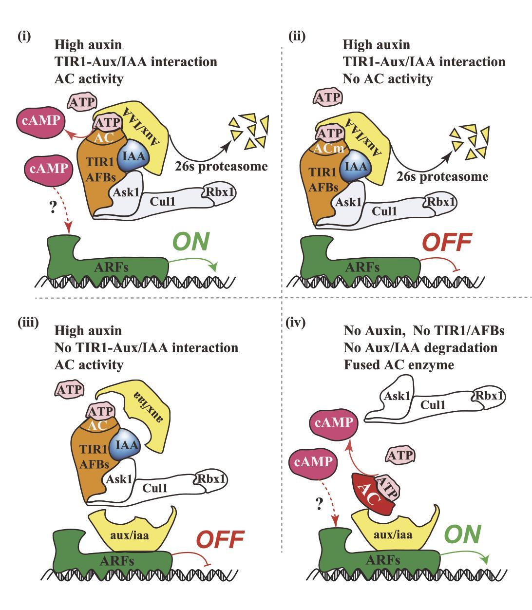 据悉,研究团队通过一系列实验发现,Aux/IAA具有双重角色,其既是泛素化降解通路的核心元件,又是腺苷酸环化酶活性调控的关键开关。