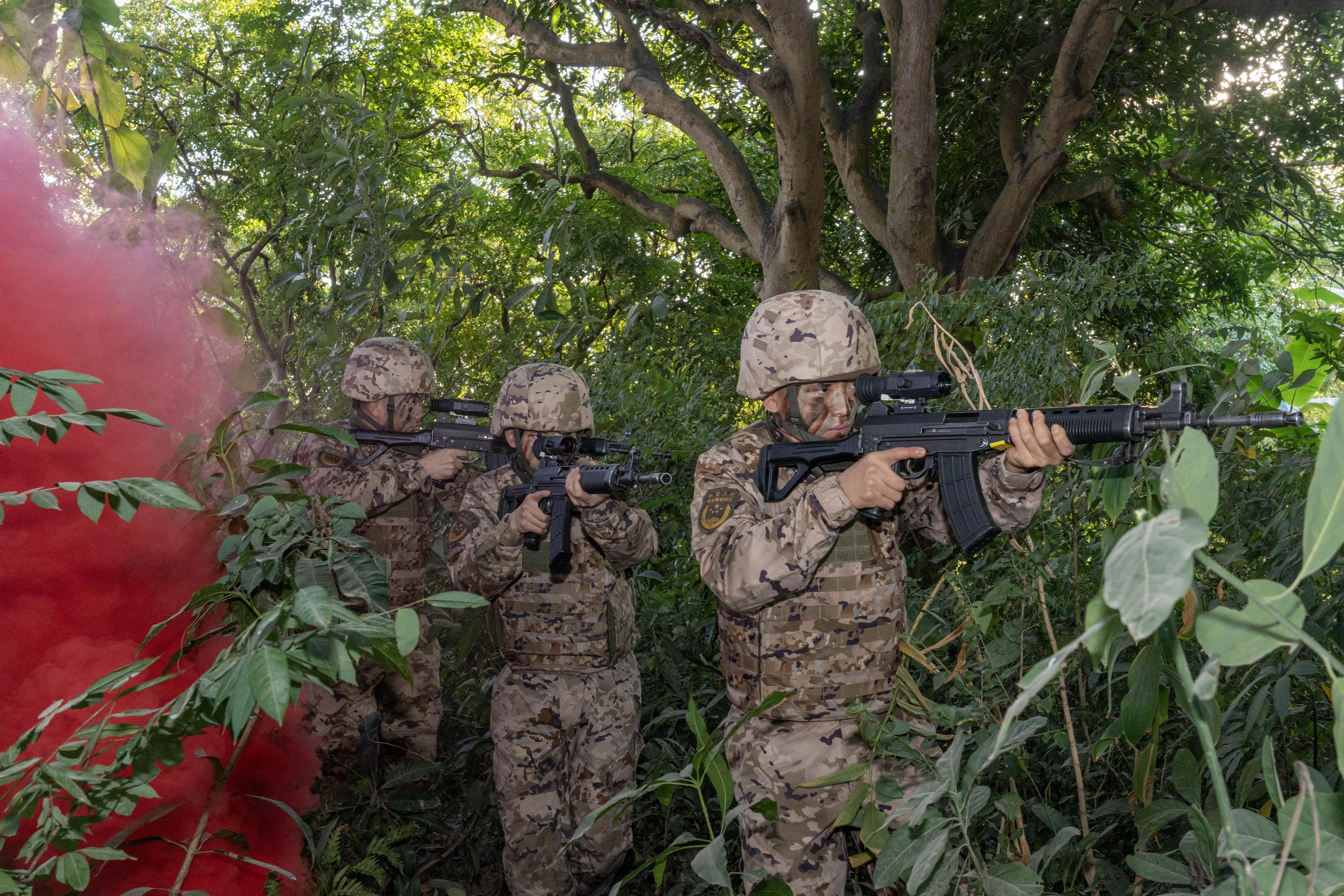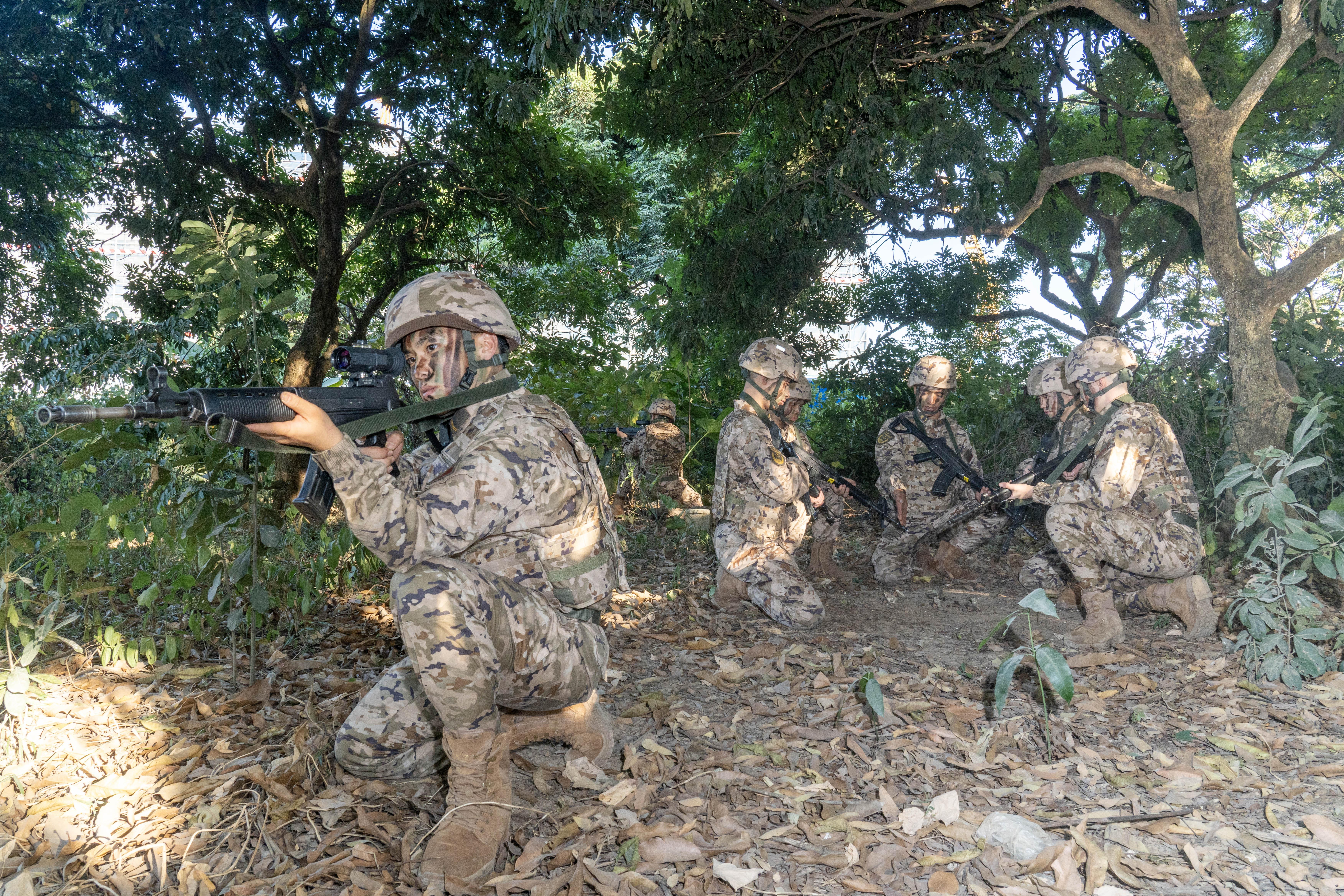 近日,武警广西总队南宁支队组织官兵在野外陌生地域开展反恐演练。此次演练通过构设逼真实战环境与多种类训练课目连贯实施的方式,从难从严组织实战化军事训练,锤炼官兵在复杂环境中的处置能力,为全面提高部队反恐水平和遂行多样化任务能力奠定坚实基础。