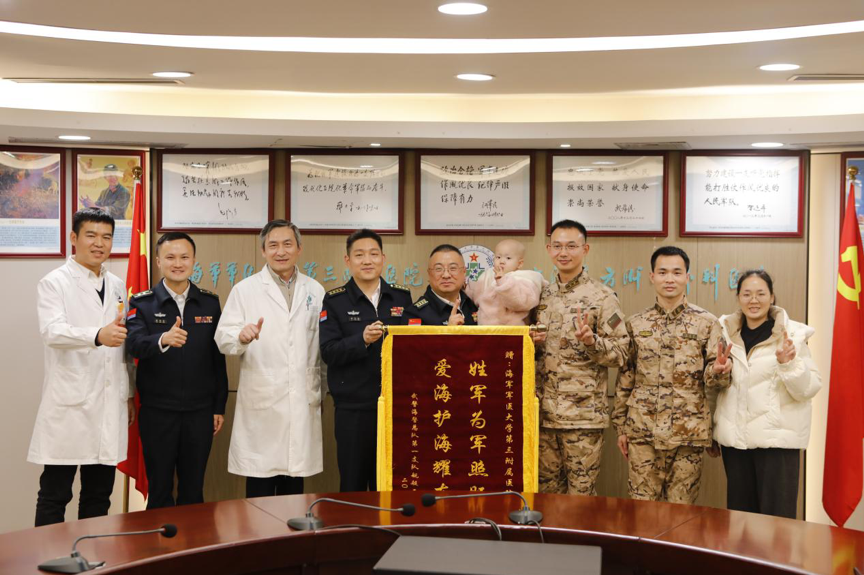 近日,在海军军医大学第三附属医院(上海东方肝胆外科医院),中国海警局直属第一局某部代表送来锦旗和感谢信,感谢医院成功救治该部执法员的孩子。