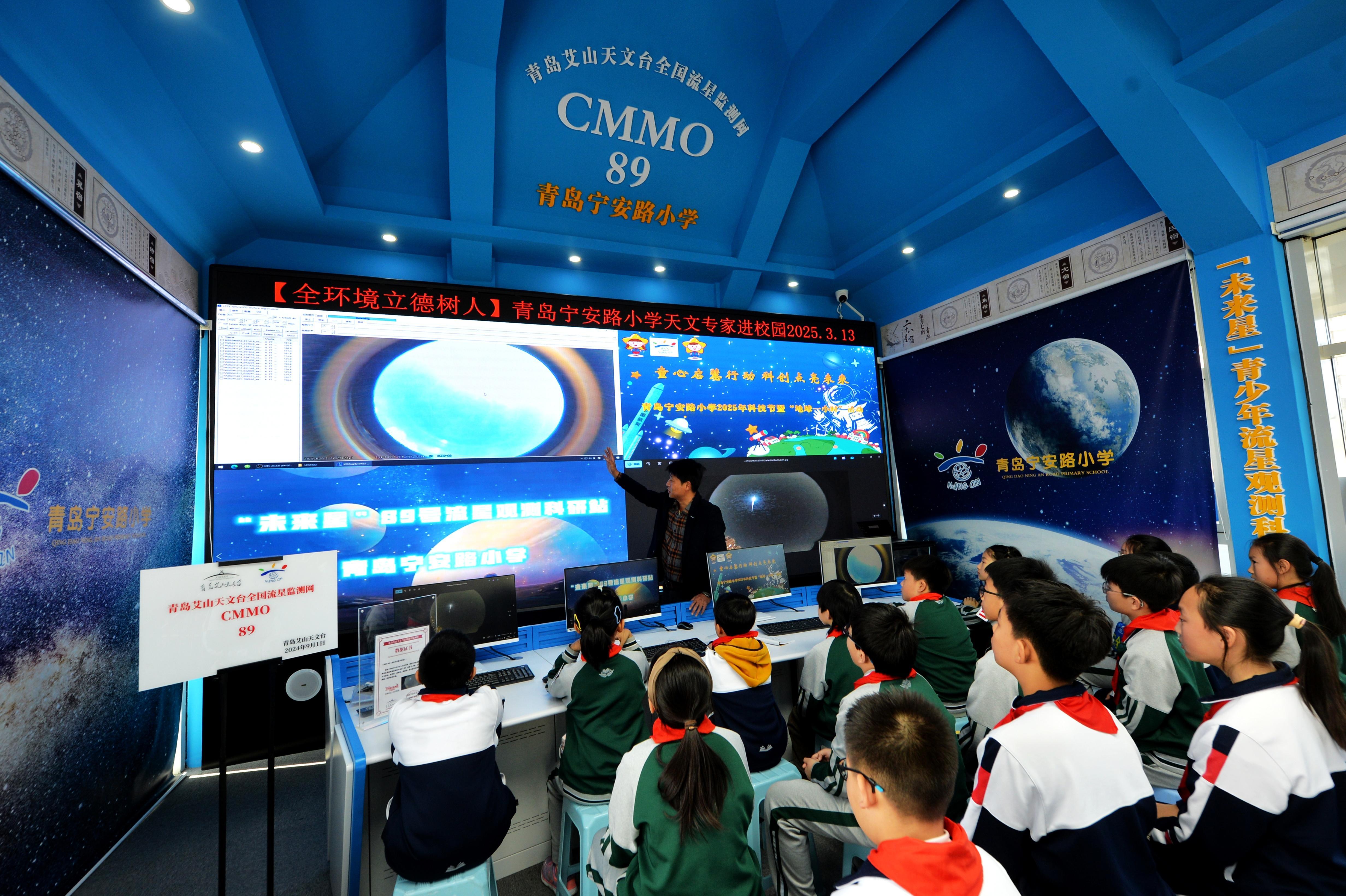 3月13日,山东省青岛市市北区宁安路小学开展“科创探索 启迪智慧”天文主题科普教育活动。活动设置天文知识宣讲、流星观测站参观等多项科普内容,以培养学生科学素养,激发学生探索星空奥秘的兴趣。
