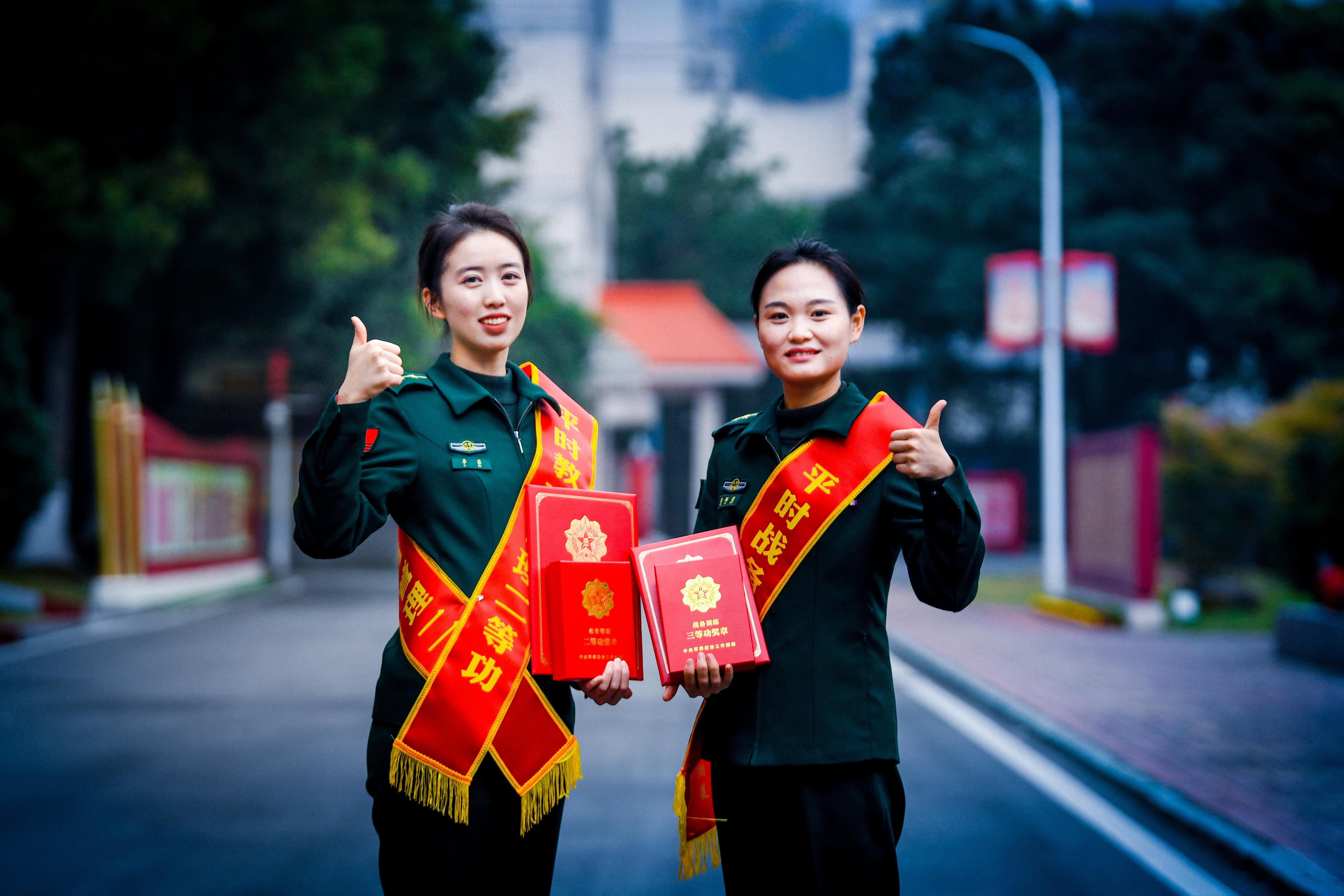 领奖台上,李睿和唐澜菱分别领取了二等功、三等功奖章和喜报。这个支队领导向官兵详细介绍了她们勇挑重担、敢争第一的先进事迹。