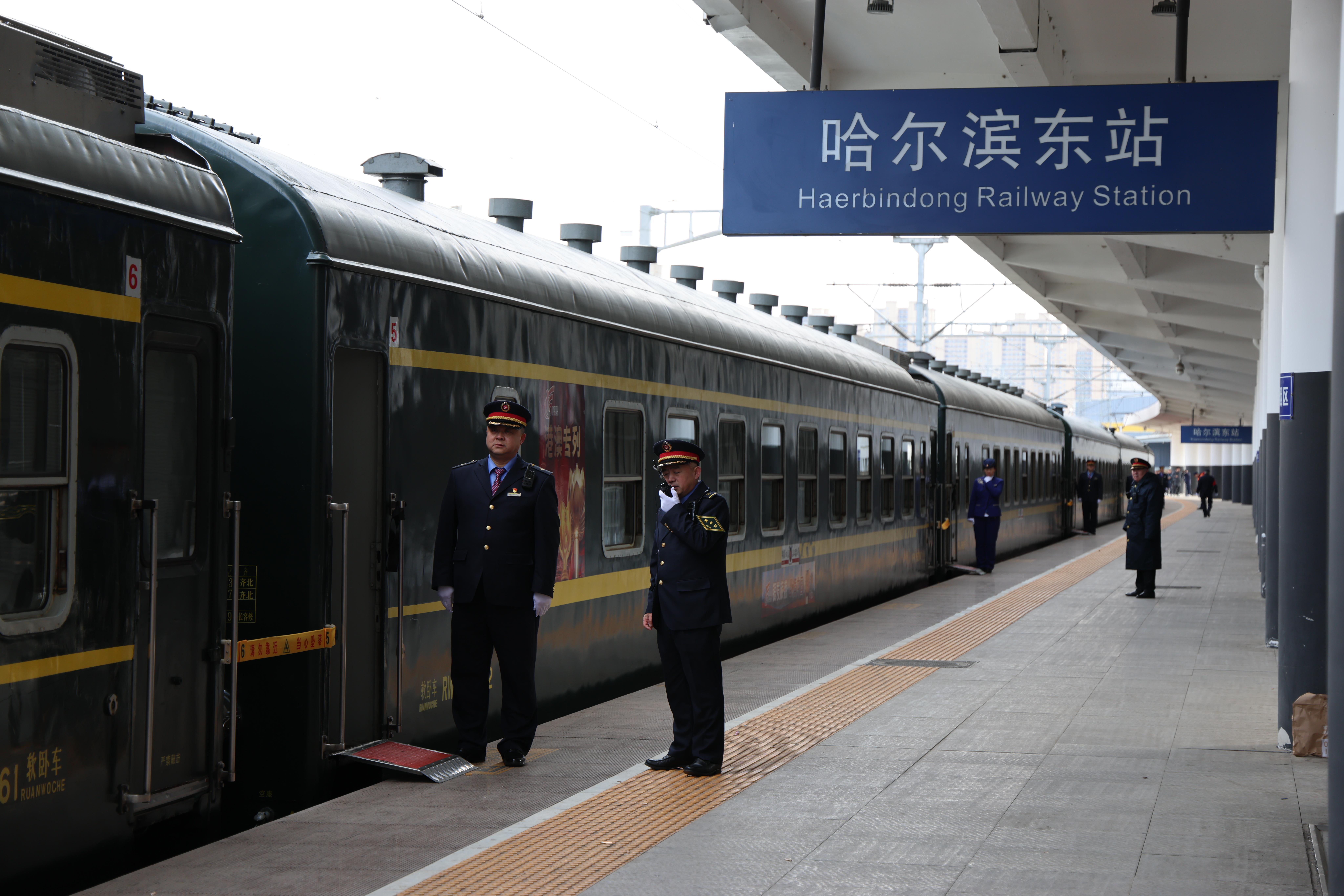 哈尔滨局集团公司选拔经验丰富的乘务人员担当乘务工作,设置健康监测区,提供随车保健顾问,配备急救药箱,餐车提供低糖低盐餐食,为游客安全健康、舒适游玩保驾护航。