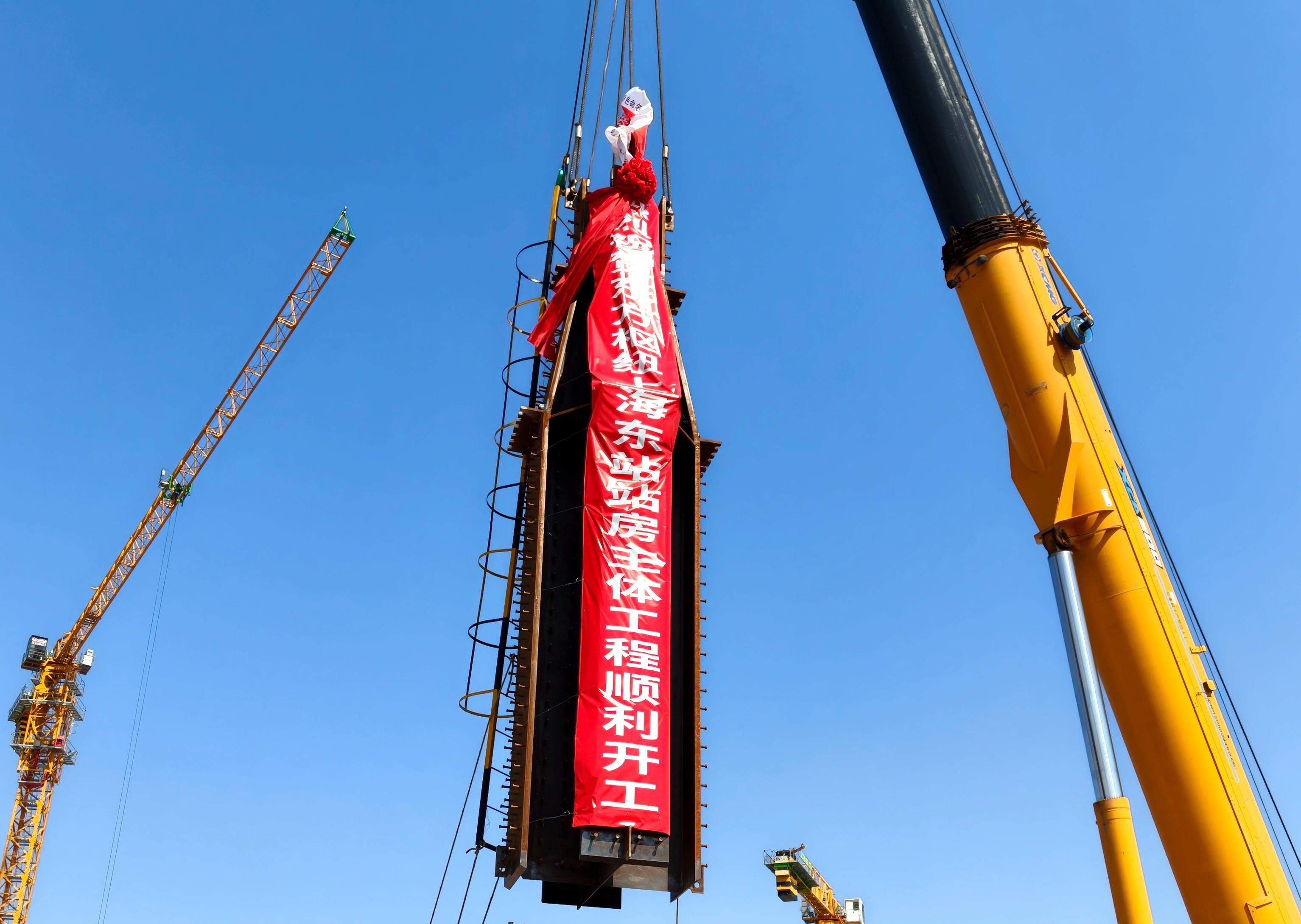 记者从中国铁路上海局集团有限公司获悉,3月18日10时18分,东方枢纽上海东站站房主体工程首根钢柱开始吊装,标志着由上海建工和中铁二十四局联合体项目部施工建设的东方枢纽上海东站进入站房主体施工阶段,项目建设取得阶段性进展。