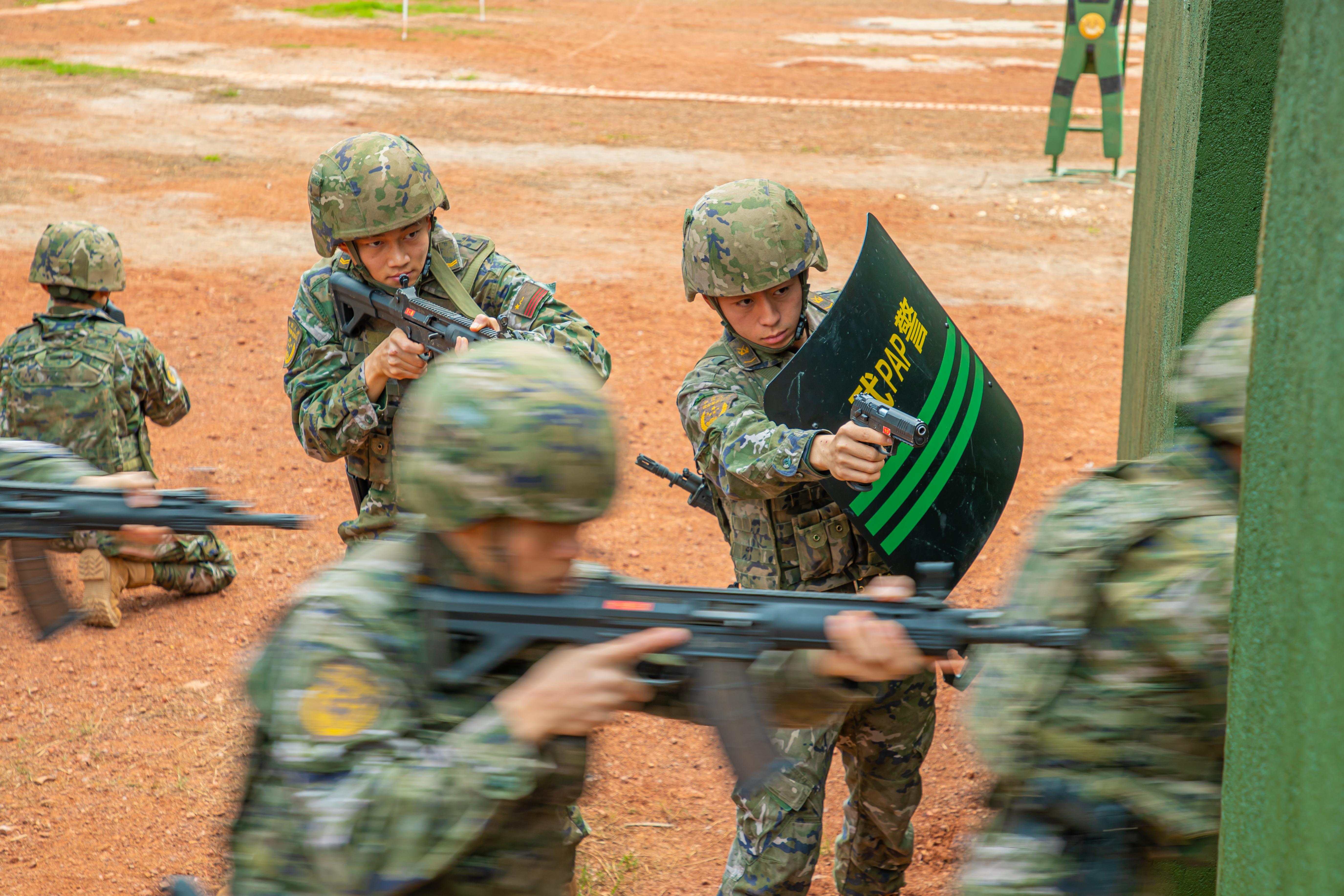 近日,武警广西总队崇左支队紧密结合部队当前任务实际,瞄准实战需求,灵活开展基础体能、小组战术、通过400米障碍、刺杀等多课目训练。支队官兵热情高涨、斗志昂扬,通过训练不断强化作战能力,锤炼技战术水平,提升打赢本领。