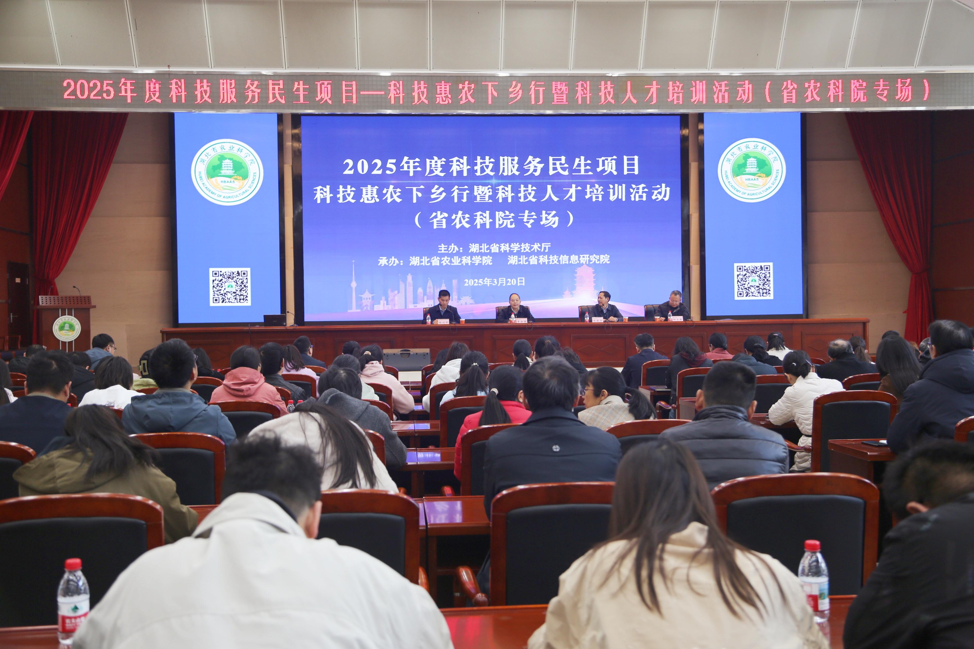 3月20日,2025年度科技服务民生项目——科技惠农下乡行暨科技人才培训活动在湖北省农科院举行。活动采用“线下主会场+线上直播”的形式,湖北省农科院近200名科技特派员、“三区”科技人才及农业科技人才参加主会场学习,湖北省6200人次在线参训,为推进湖北科技服务民生项目赢得全年“开门红”。