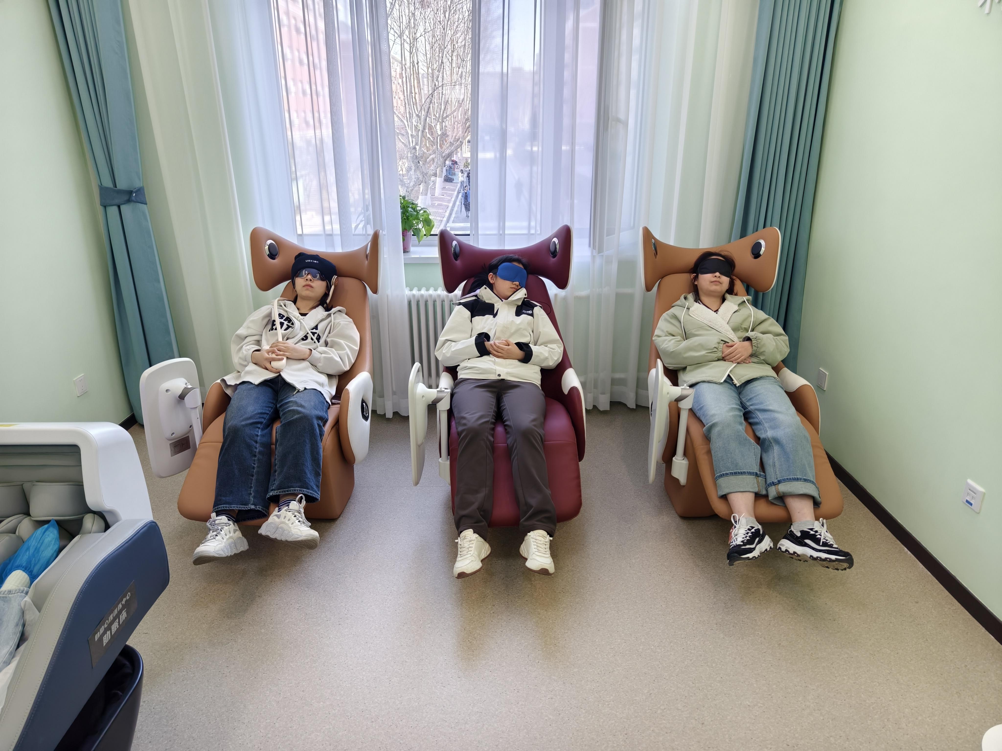 走进大连理工大学“深睡小屋”,放松椅、睡眠减压舱、助眠床等设备一应俱全,师生可以通过放松训练、脑波监测、身体按摩放松等多种途径缓解焦虑、抑郁情绪,改善睡眠。大连理工大学心理健康教育与咨询中心主任鲍英善介绍,该校依托“深睡小屋”等载体,长期开设“好心情助睡眠”工作坊,针对学生大学英语四六级考试、考研、期末考试等重要生活事件提供舒缓压力的途径和方法,通过提升学生的压力应对与情绪管理能力,减少和调控负性情绪,提升睡眠质量。同时,该校定期举办“睡眠充电站”心理沙龙,将生物反馈技术运用到睡眠干预中,师生可以通过设备监测的脑电、肌电和心率变异性指标,观察到自己的压力状态变化,并进行针对性的心理训练,以改善睡眠质量。