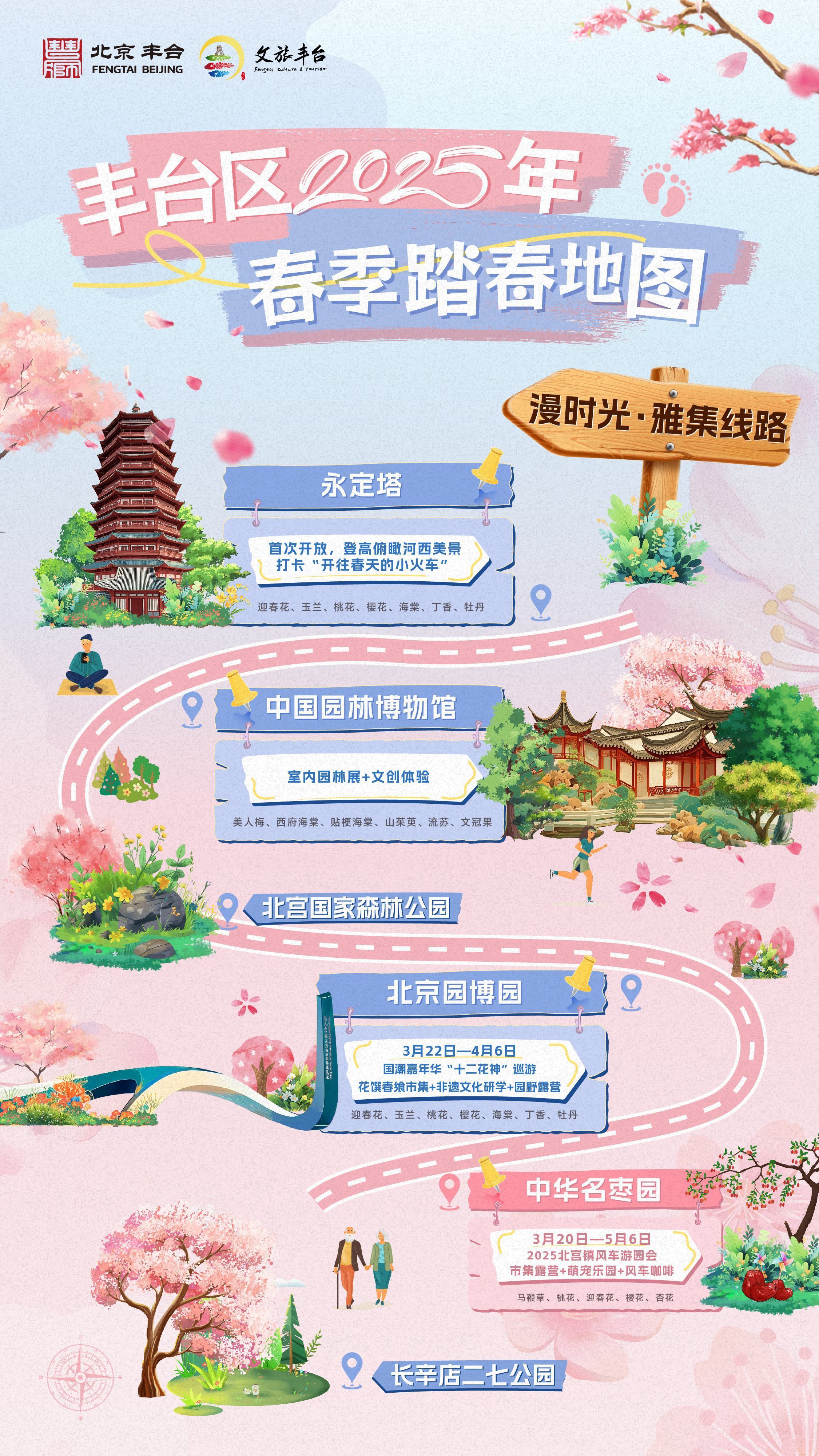 现场还进行了踏青赏花线路创新发布,从“生态秘境、文化博览、亲子研学、休闲度假”四个维度,重点推介了丰台区4条春季旅游路线。其中,包含3条“一日主题漫游路线”和1条“两日休闲微度假路线”。