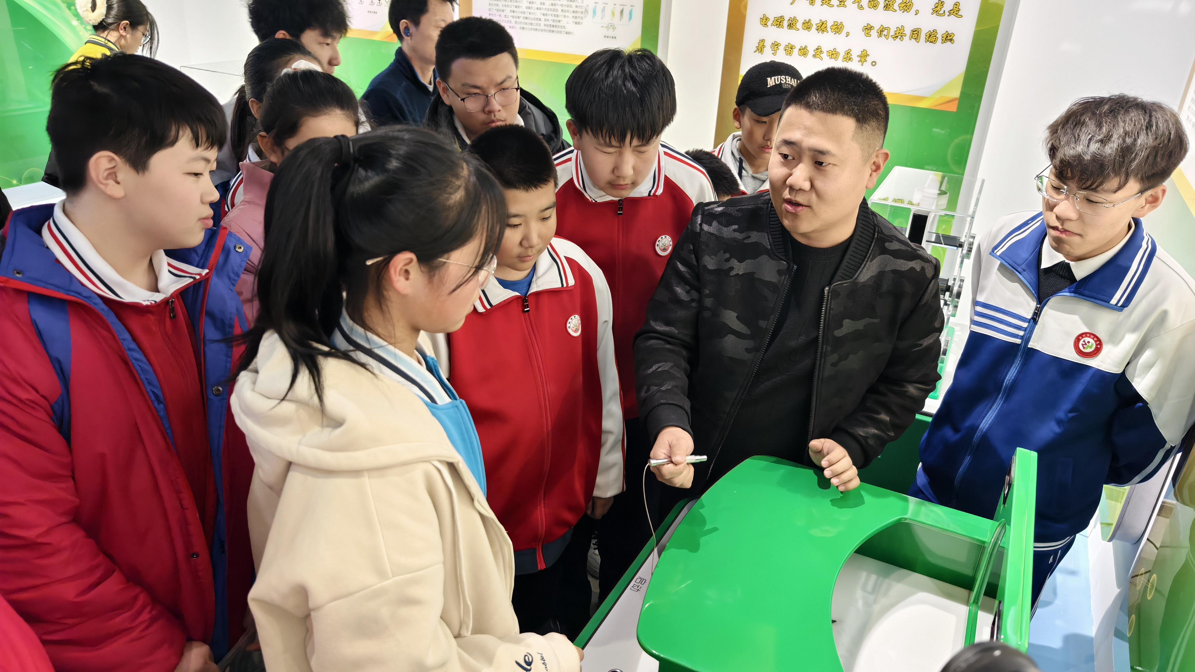 课间,同学们聚集在“微缩科技馆”科普大篷车,戴上VR眼镜体验仿真场景、观看小机器人惟妙惟肖的舞动、惊叹于回形针的磁力之舞,参与了各种丰富多彩的互动体验,探索科学奥秘。