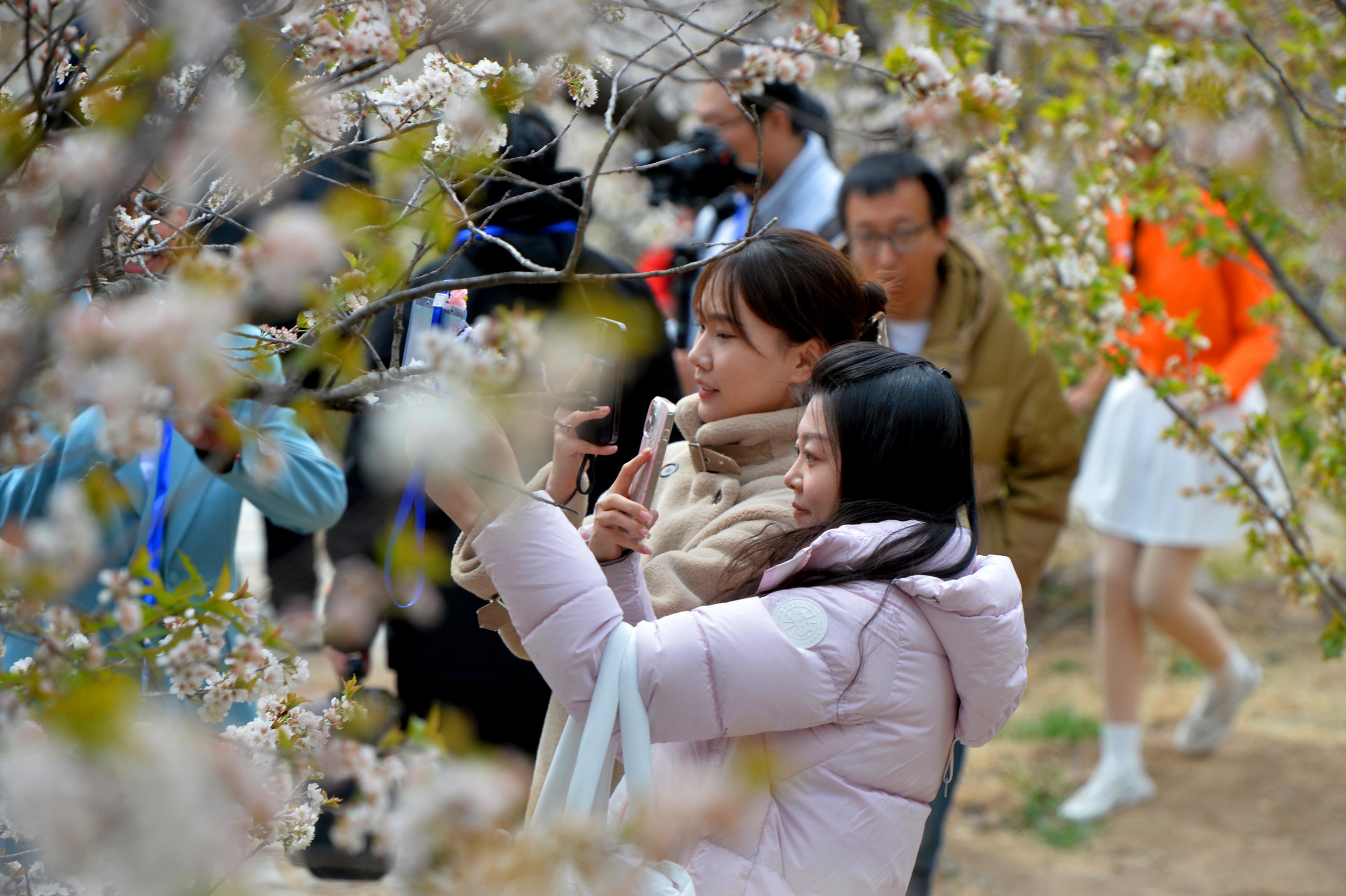 眼下,青岛崂山区北宅街道55万株樱桃花绚烂绽放,吸引不少游客前来体验“花海穿行”,乐享春光。