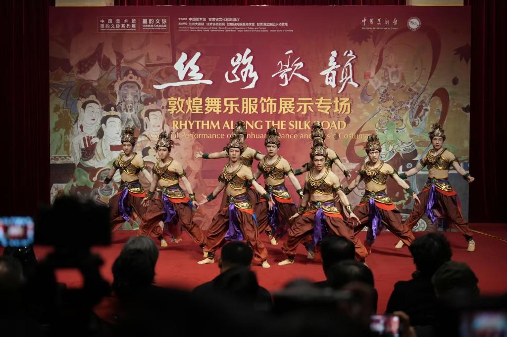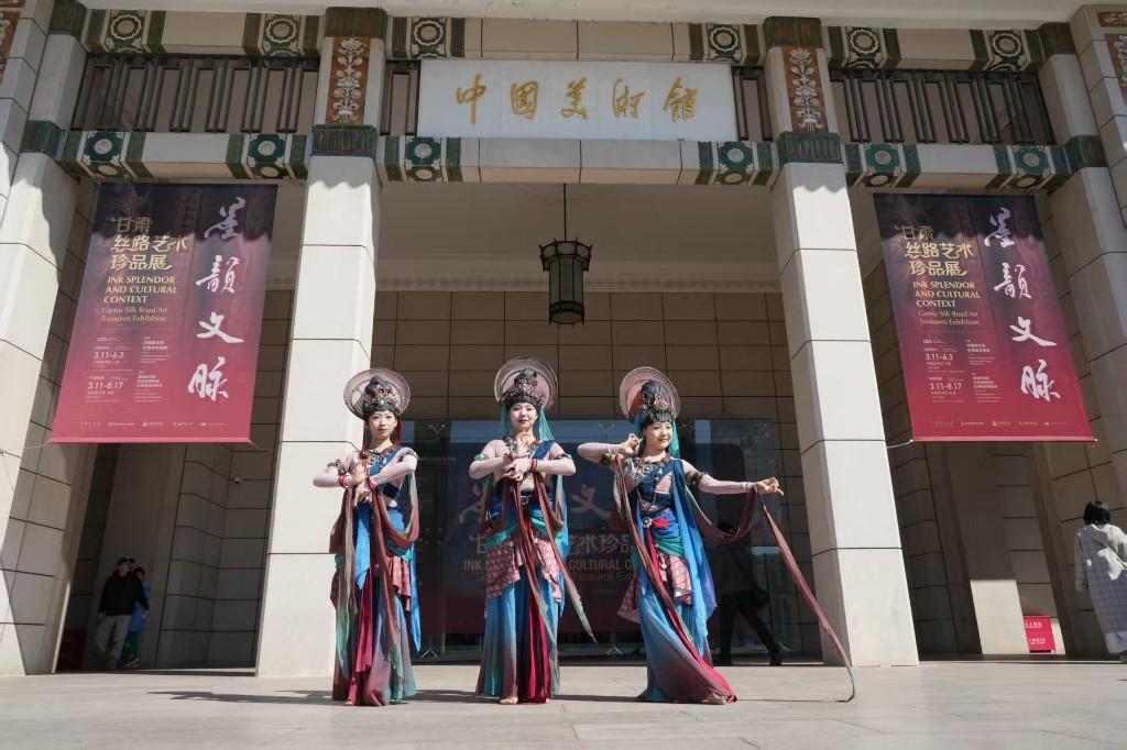 3月30日,由中国美术馆、甘肃省文化和旅游厅联合主办的“丝路歌韵:敦煌舞乐服饰展示专场”在中国美术馆举办。活动以歌舞与服饰展示相结合的形式,弘扬丝绸之路文化,丰富公众艺术体验。