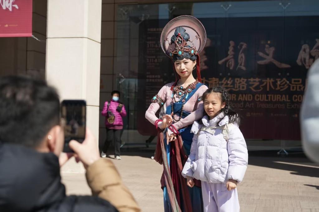现场还展出了敦煌复原服饰,重现壁画中的典型造型与妆容,增强观众的沉浸式观展体验。