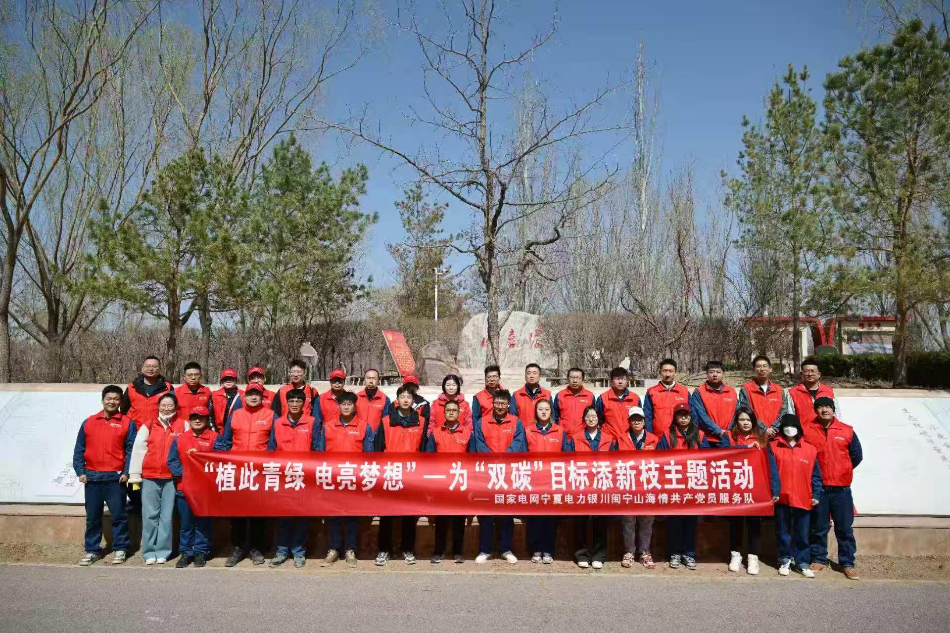 3月28日,国家电网宁夏电力银川闽宁山海情共产党员服务队30余名队员走进宁夏灵武白芨滩国家级自然保护区,以“植此青绿 电亮梦想”为主题开展了一场别开生面的植树活动。队员们手持铁锹,肩扛树苗,在荒滩中践行“删除荒漠,加载春天”的绿色诺言。