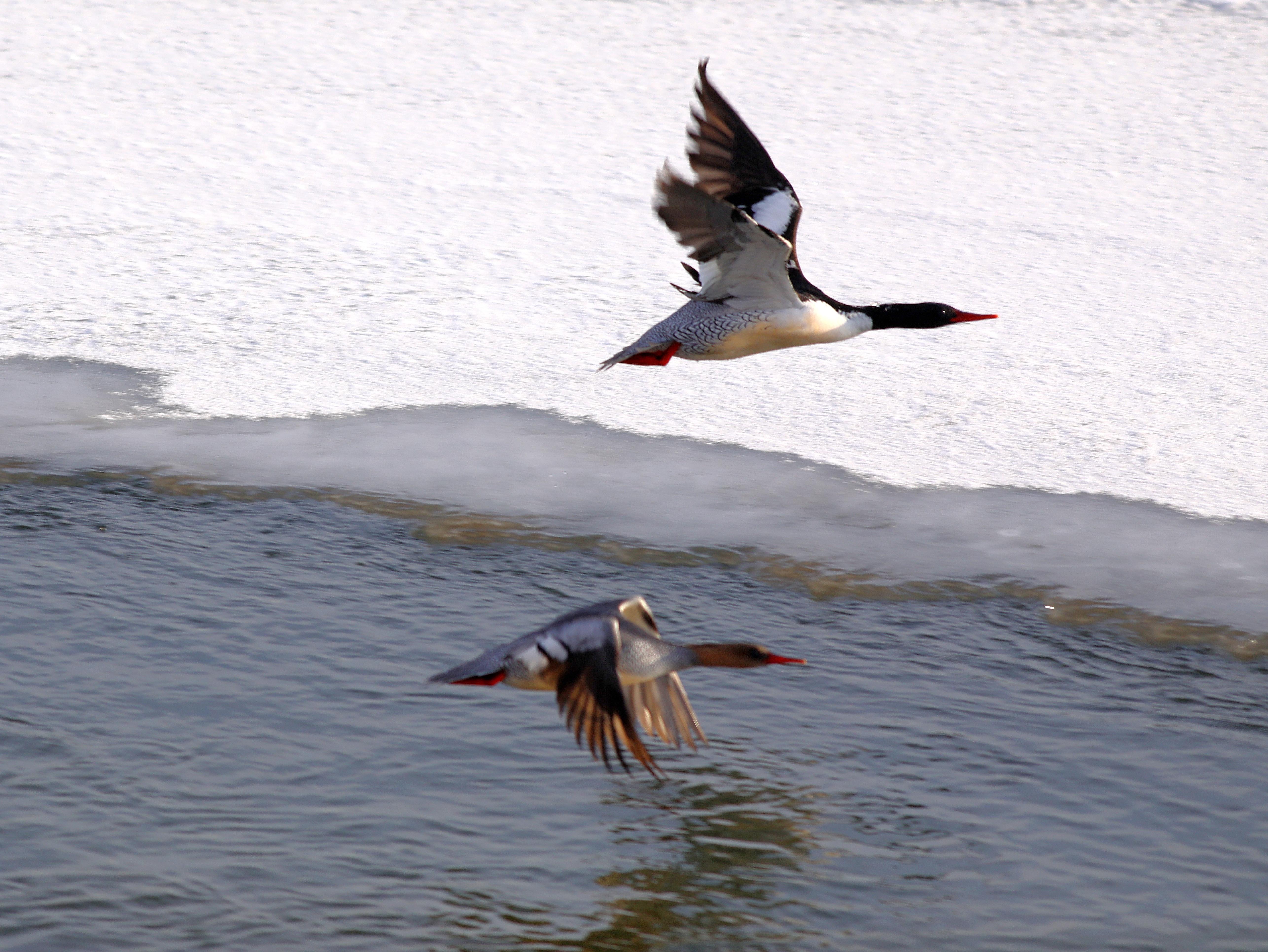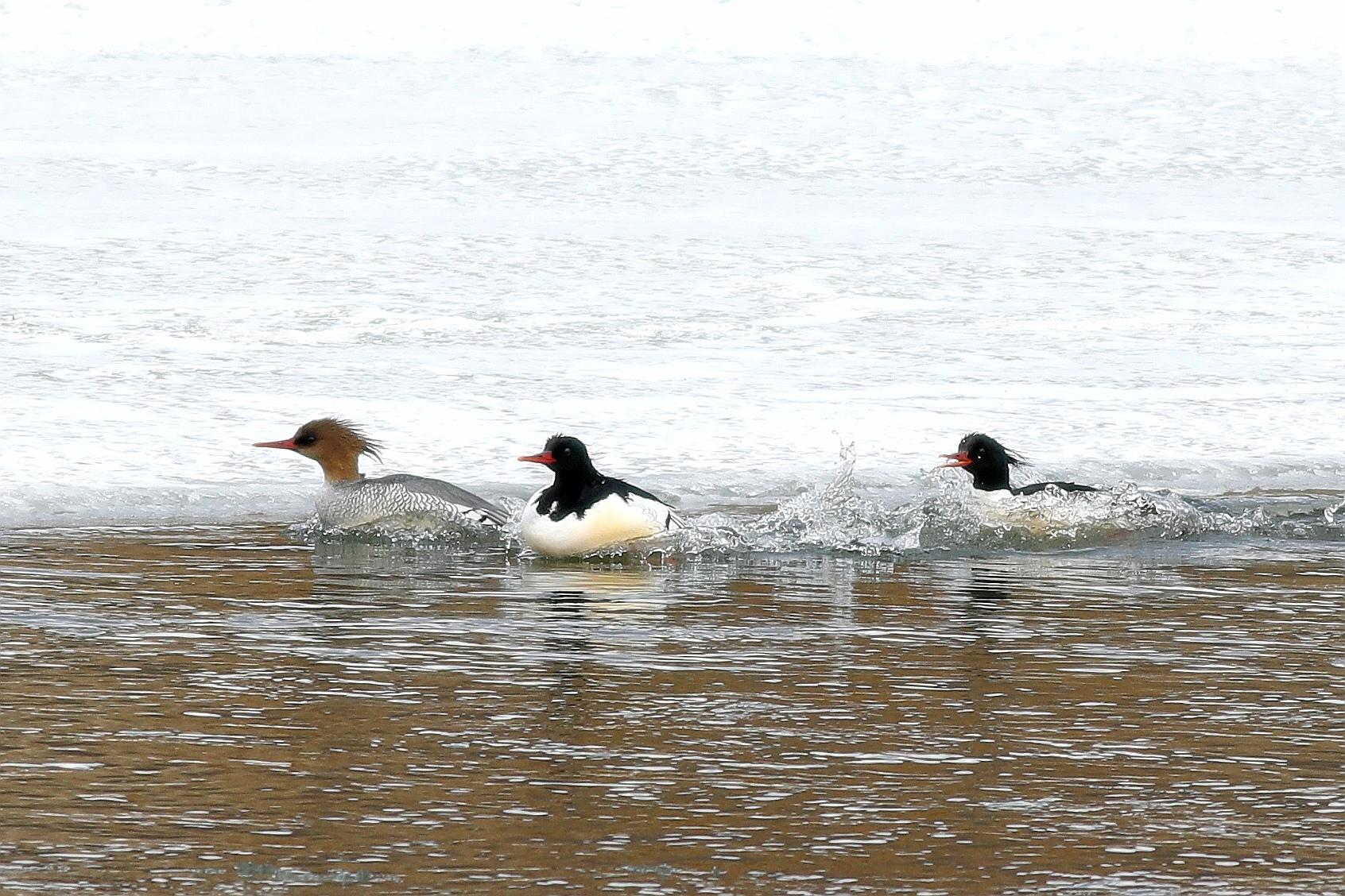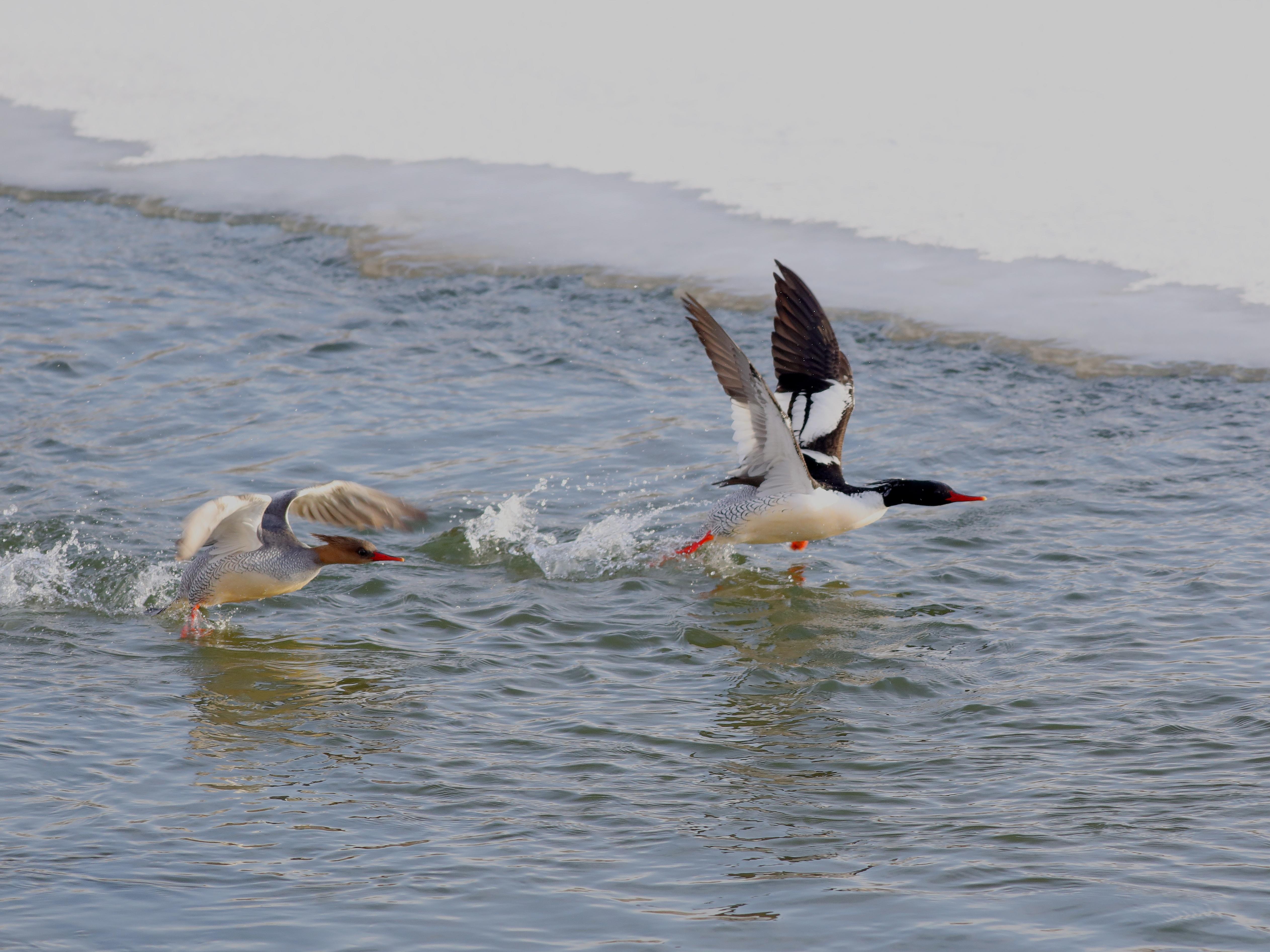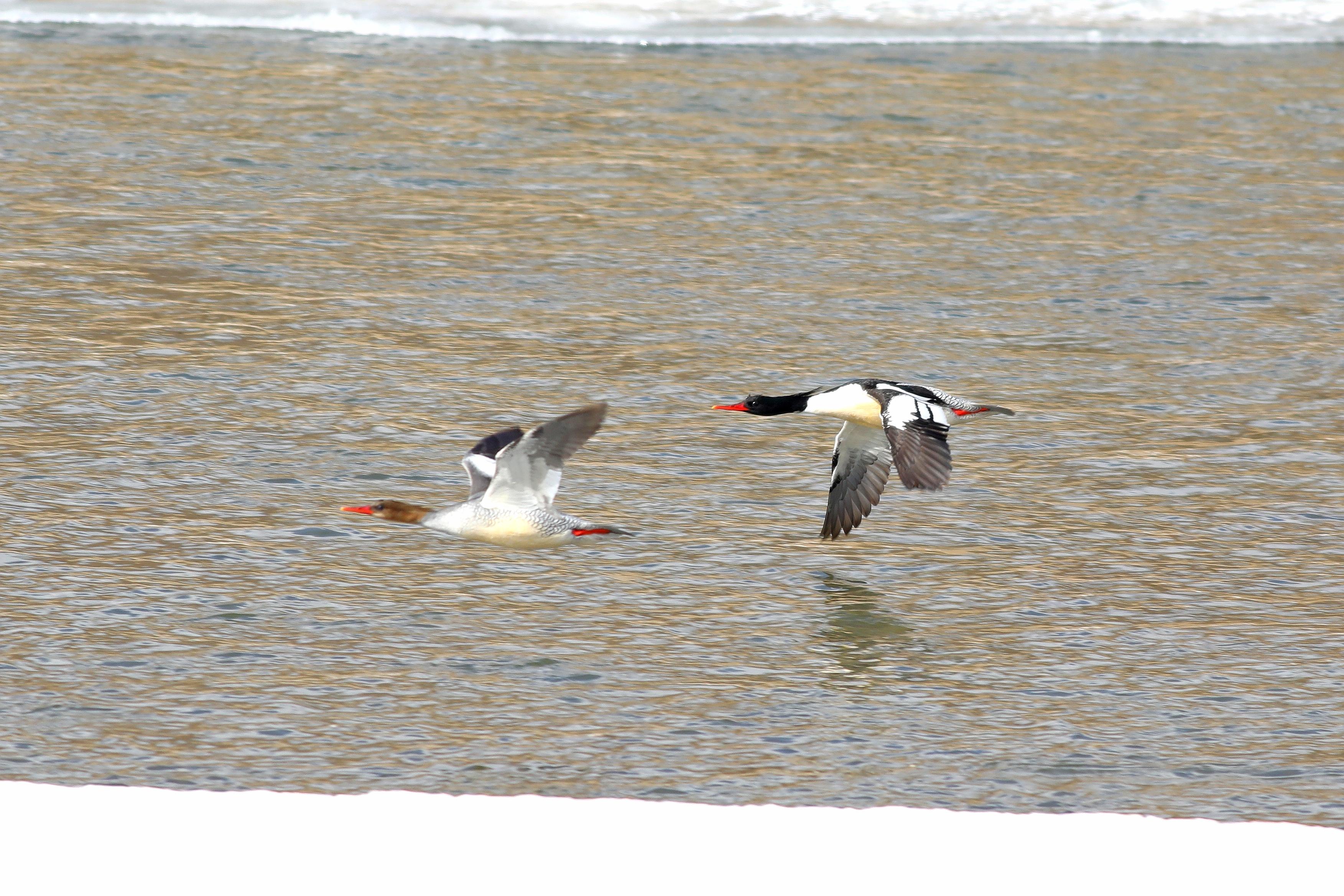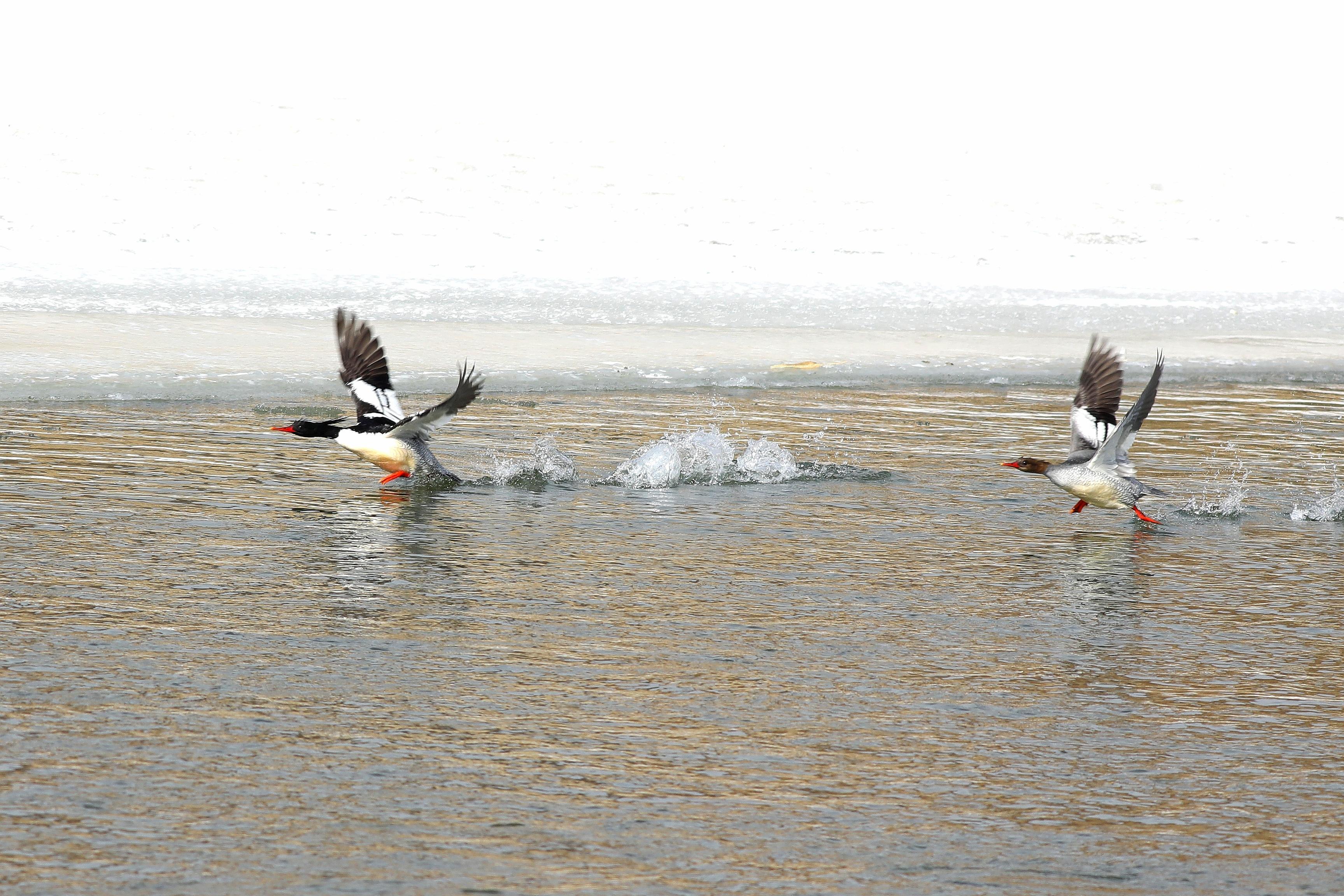 “快看!那几只翅膀带白斑的就是中华秋沙鸭,这好像不是往年的族群,是新族群!”中国雪乡文联摄影协会会员孙强烈紧握相机激动地说。