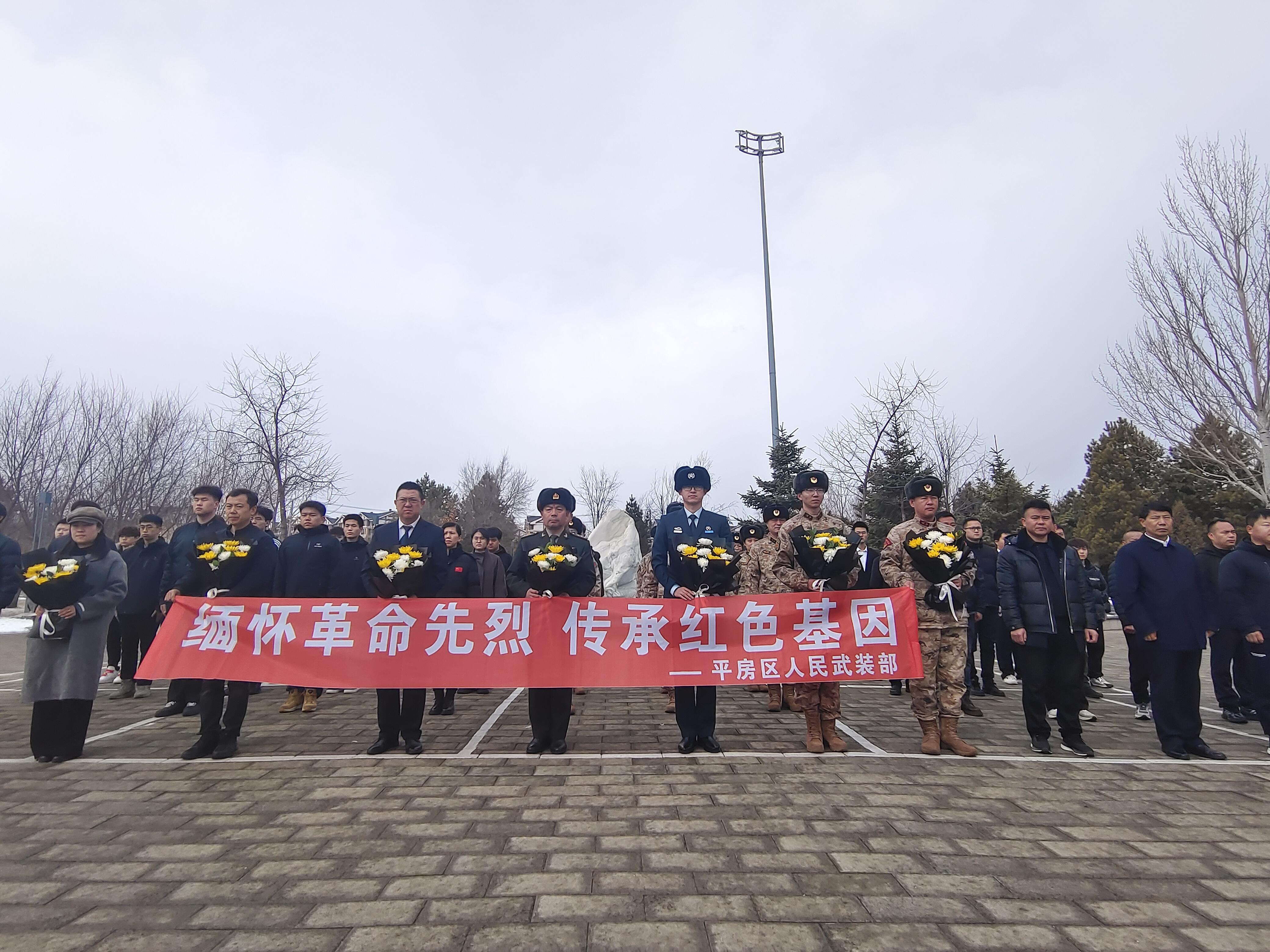 清明节前夕,黑龙江省哈尔滨市平房区人武部主要领导及干部职工、退役军人事务局领导和基层专武干部、基层民兵骨干、学校征兵预备队成员、退役军人代表、企业家代表等一起来到区域内的国防教育主题公园英雄广场,共同祭奠不同时期的中国人民解放军10位挂像英模。活动由平房区人武部部长尹爱军主持。