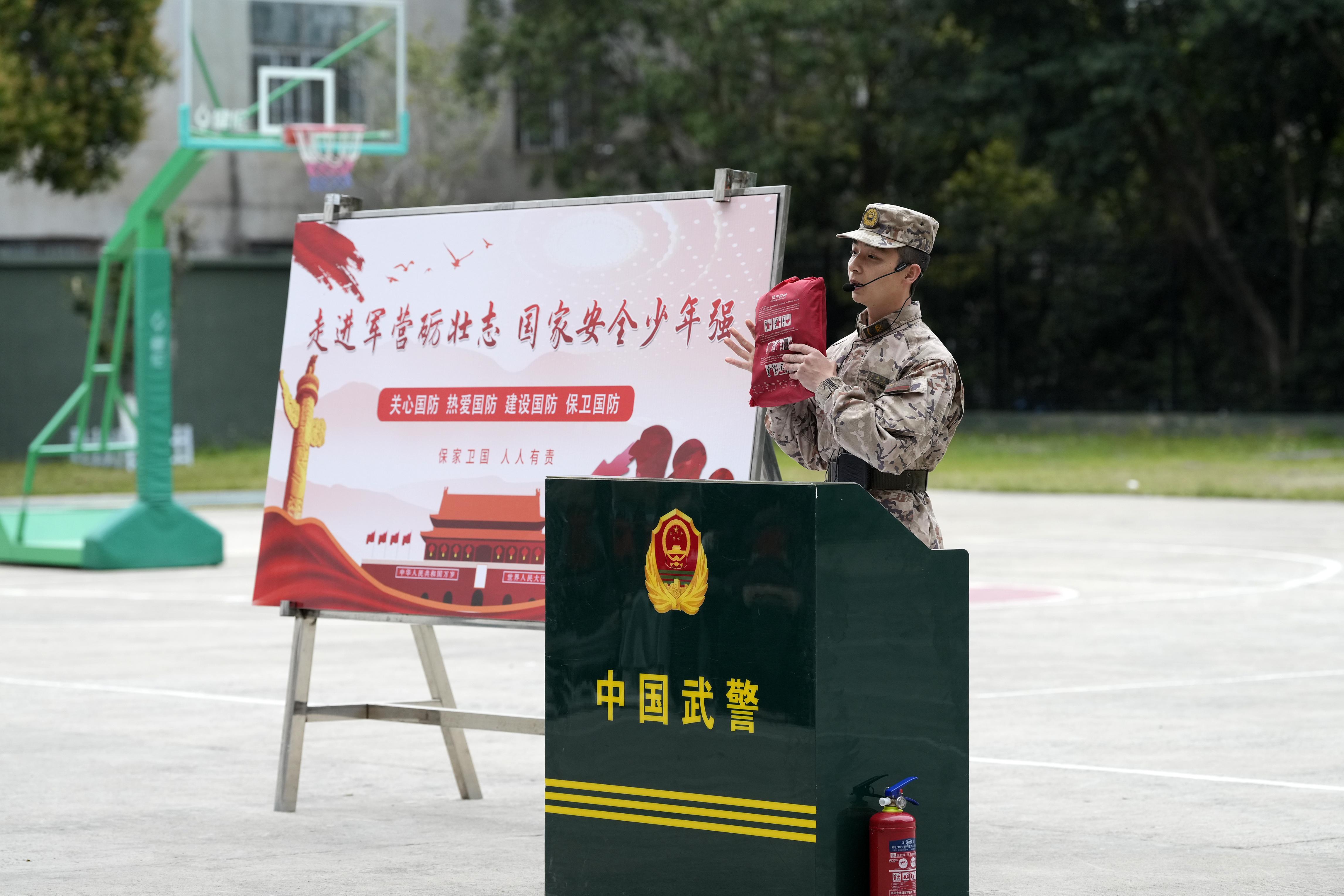 在国防安全教育知识宣讲环节,武警福州支队某中队排长陈治致走上讲台,以通俗易懂的语言向同学们介绍了全民国防的概念,并通过详实的数据和真实案例,深入剖析国防安全的重要性,在互动交流中引导师生增强国防意识,提升国防素养。鼓楼第一中心小学教师陈远庆表示:“国防安全教育应该从小抓起,以往我们在课堂上开展教育,只能引导和启发孩子思考,今天的实地观摩和现场体验比课堂教育更直观,学生们记忆会更加深刻,教育效果更加显著。”