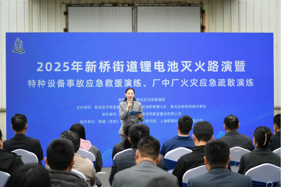 3月28日,常州高新区(新北区)新桥街道举行2025年锂电池灭火路演暨特种设备事故应急救援演练、厂中厂火灾应急疏散演练。