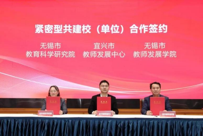 无锡市教科院、无锡市教师发展学院、宜兴市教师发展中心签署了《区域教师高质量专业化发展合作共建协议》。此次签约聚焦构建协同发展的教师成长新生态,旨在提升宜兴市教师教育教学、科研及创新能力,打造一支具有高尚师德、精湛业务、创新精神的高素质专业化教师队伍。
