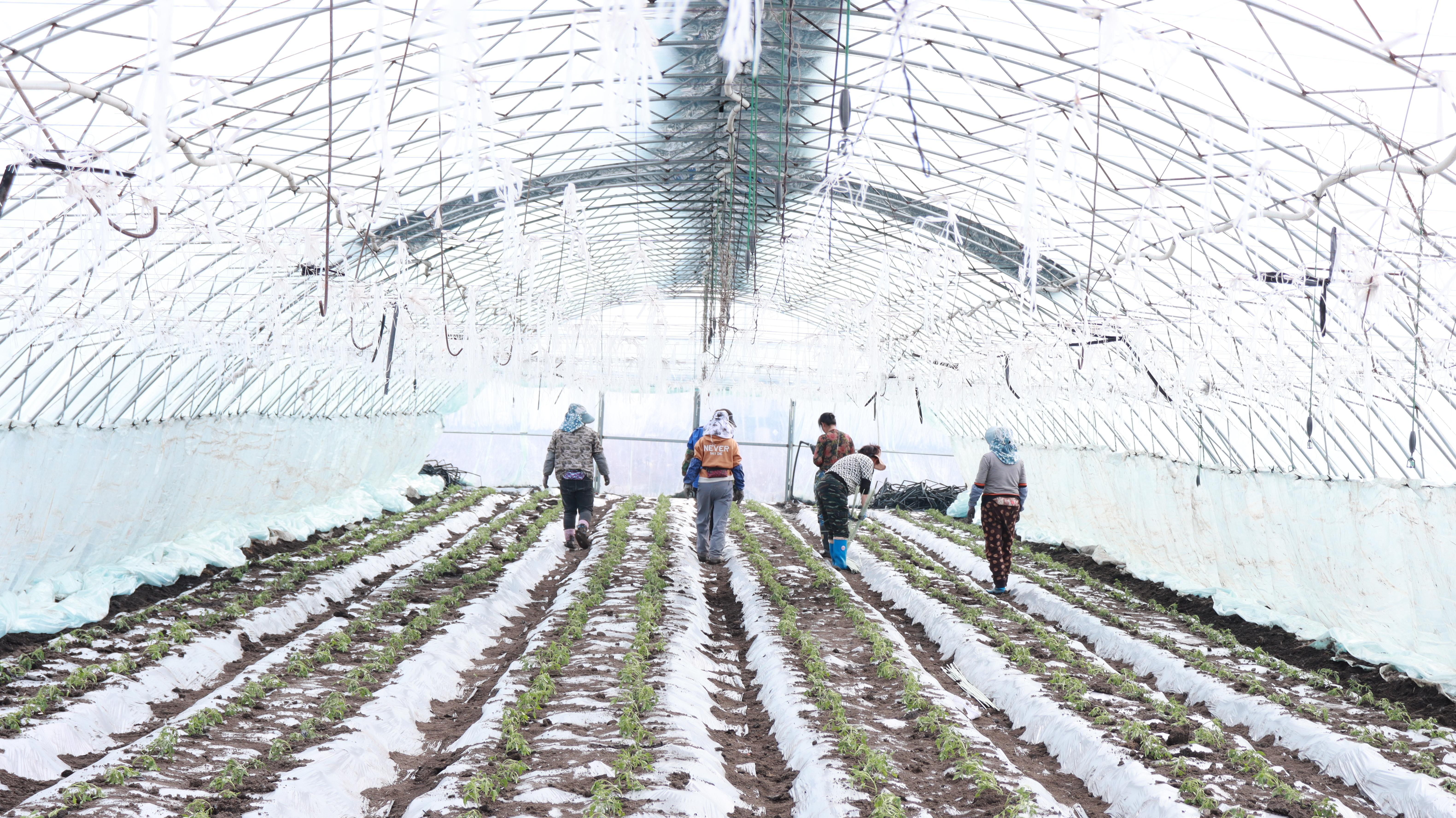 走进桦丰村果蔬采摘园的50栋大棚,温暖湿润的空气扑面而来。这个占地面积7万平方米的果蔬大棚,主要种植水果和蔬菜。该大棚依托智能灌溉系统和新型保温材料,白天通风,夜间保温,定时洒水,全程施用农家肥料,这些科技武器让反季节蔬菜种植变得游刃有余。