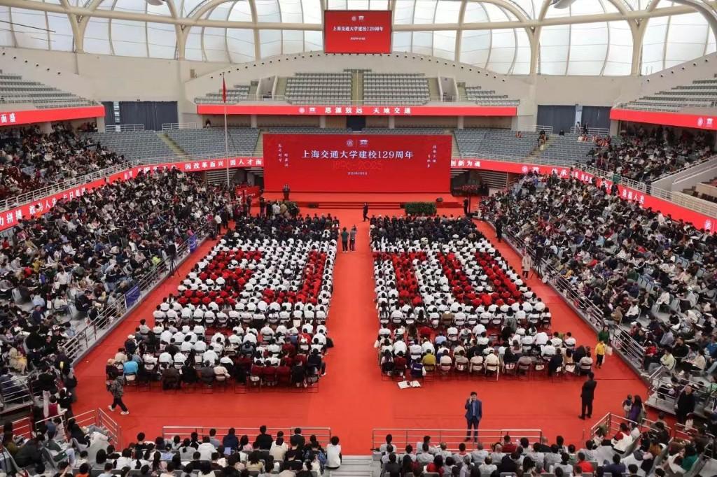 4月6日,上海交通大学纪念建校129周年大会在闵行校区霍英东体育中心举行。