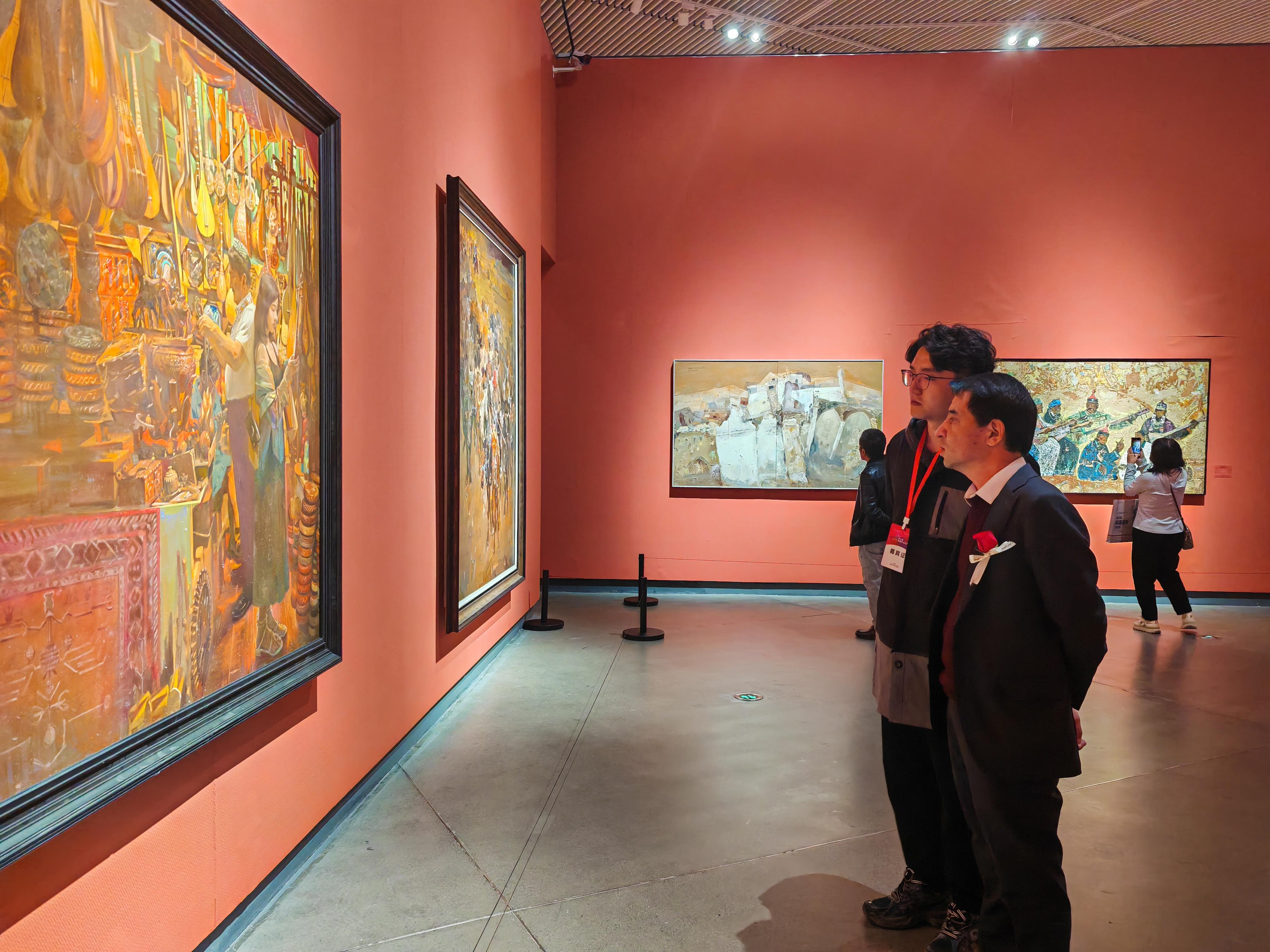 据悉,第五届新疆油画展在新疆美术馆展出,共征集136幅精选油画作品,集中展现新疆多元一体的文化魅力、壮美辽阔的自然风光,展现各族人民团结奋进新时代的精神风貌。