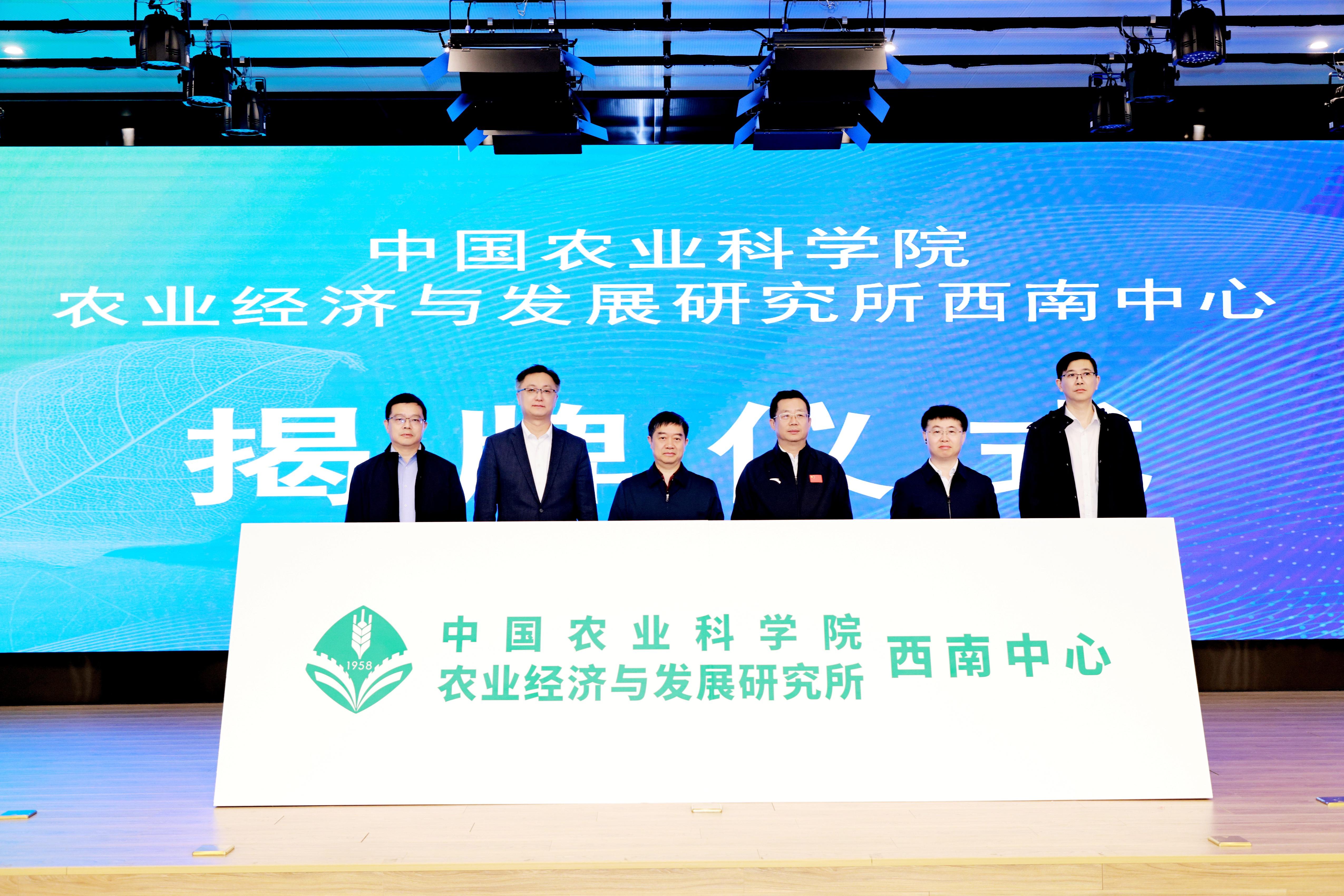 中国农业科学院、四川省农业农村厅、成都市农业农村局、国家成都农业科技中心等部门领导共同为中心揭牌。农经所所长胡向东、党委书记毛世平向陈萌山、金文成、杨秀彬、王济民等专家颁发学术委员会聘书。天府新区、四川现代种业集团、眉山丹棱县、凉山盐源县等单位与农经所和西南中心分别签订战略合作协议。