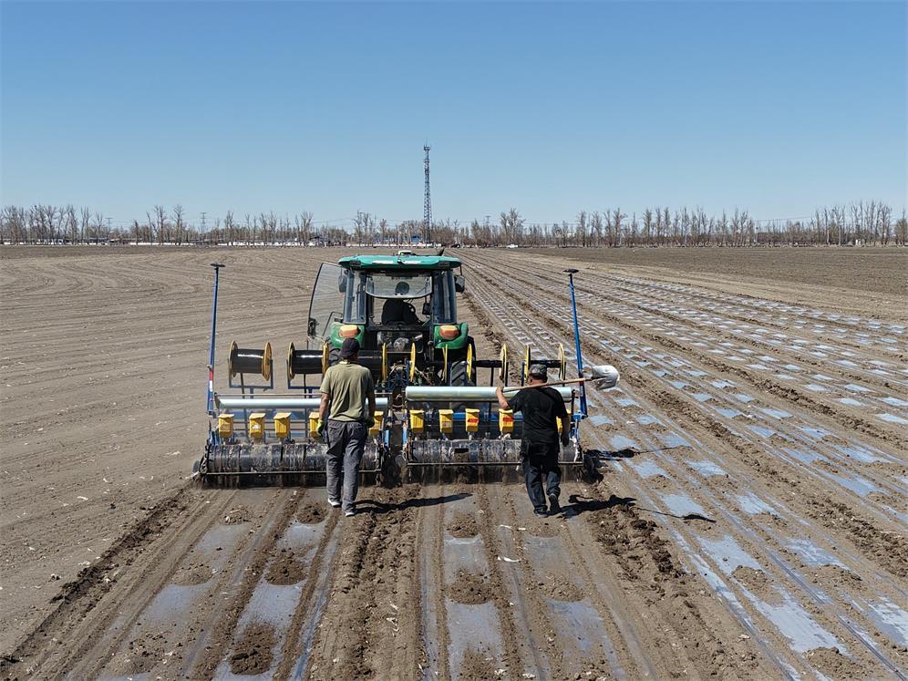 4月11日,走进新疆生产建设兵团第六师六运湖农场六连种植户马林辣椒种植地里,映入眼帘的一辆播种机正来回作业播种辣椒。大家分工明确,配合默契,现场十分热闹。