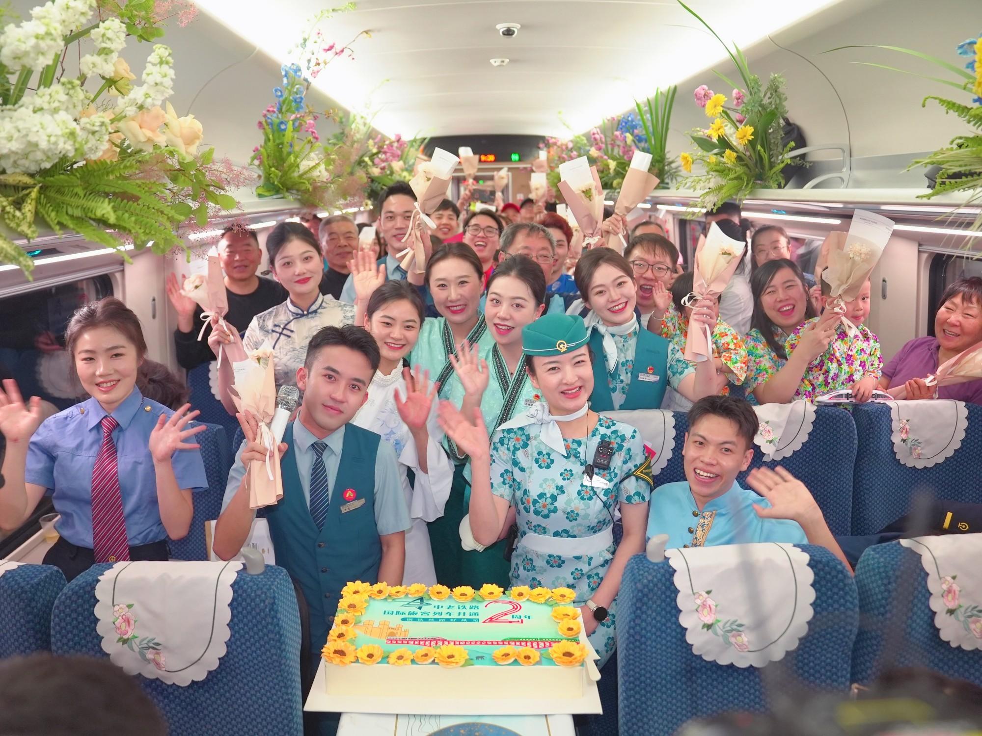 两年来,这一国际旅客列车以文化、美食、服务“三位一体”的创新模式,构建起中老命运共同体的生动载体。中国铁路昆明局集团相关负责人表示,未来将深化数字化服务升级,持续打造“一带一路”人文交流新样板。