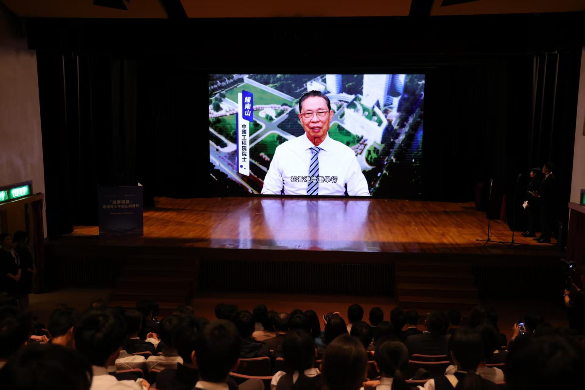 活动上,中国工程院院士、广州实验室主任钟南山通过视频致辞。他表示,粤港两地地缘相邻、人缘相亲、语言相通、民俗相近,加强粤港青少年科学教育的交流合作,不仅能够提升大湾区青少年的科技创新能力,还能更好地促进他们融入国家的发展大局。此次科普行活动为两地青少年提供了一个亲身探索科学奥秘、感受科技进步、体验科研实践的广阔平台。