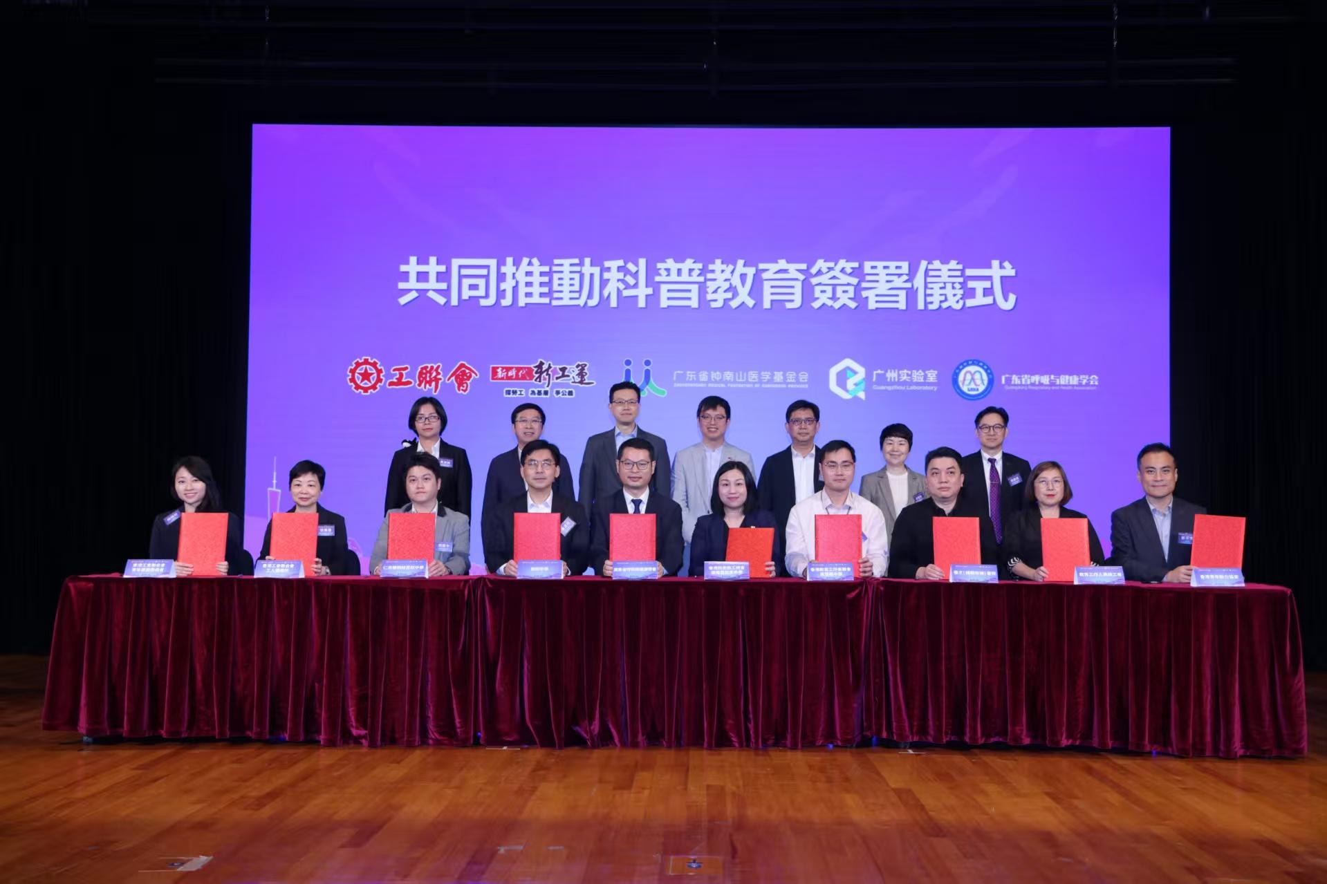 会上,广东省呼吸与健康学会与香港四邑商工总会陈南昌纪念中学、创知中学、仁济医院林百欣中学等单位签订共同推动科普教育承诺书。根据承诺,10家签署单位将共同携手推动科普教育的创新与发展,助力提升粤港澳大湾区青少年科学素养。