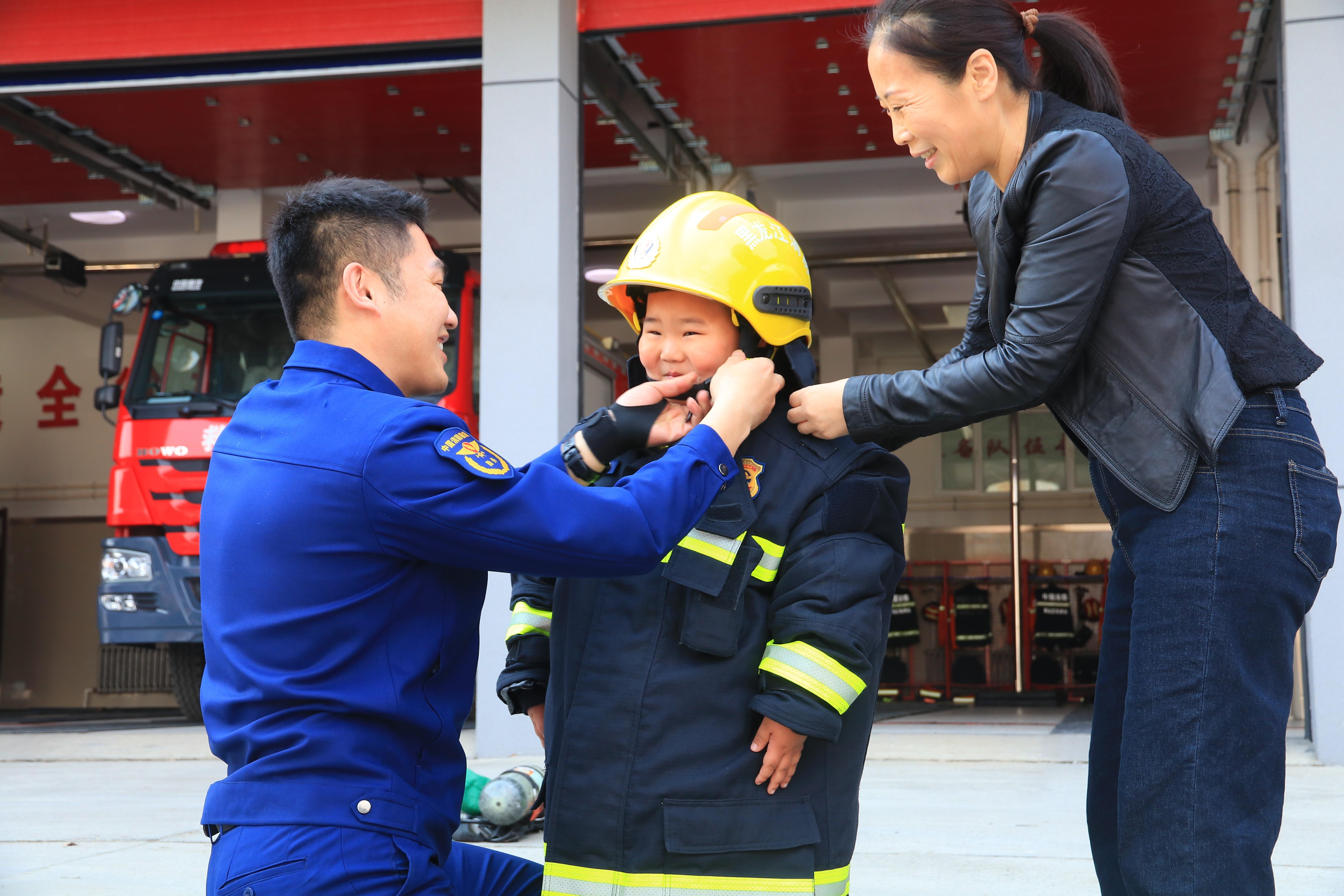 在互动体验环节,孩子们穿上厚重的消防防护服,感受消防员出警时的负重与艰辛,他们登上消防车驾驶座,体验消防员奔赴火场的使命感。