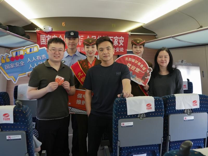 4月14日,在第十个全民国家安全教育日来临之际,中国铁路武汉局集团有限公司襄阳客运段联合襄阳铁路公安处在G6818次列车上开展“全民国家安全教育 走深走实十周年”主题宣传活动,采取发放宣传折页、快板表演、与旅客互动等方式增强旅客国家安全意识。