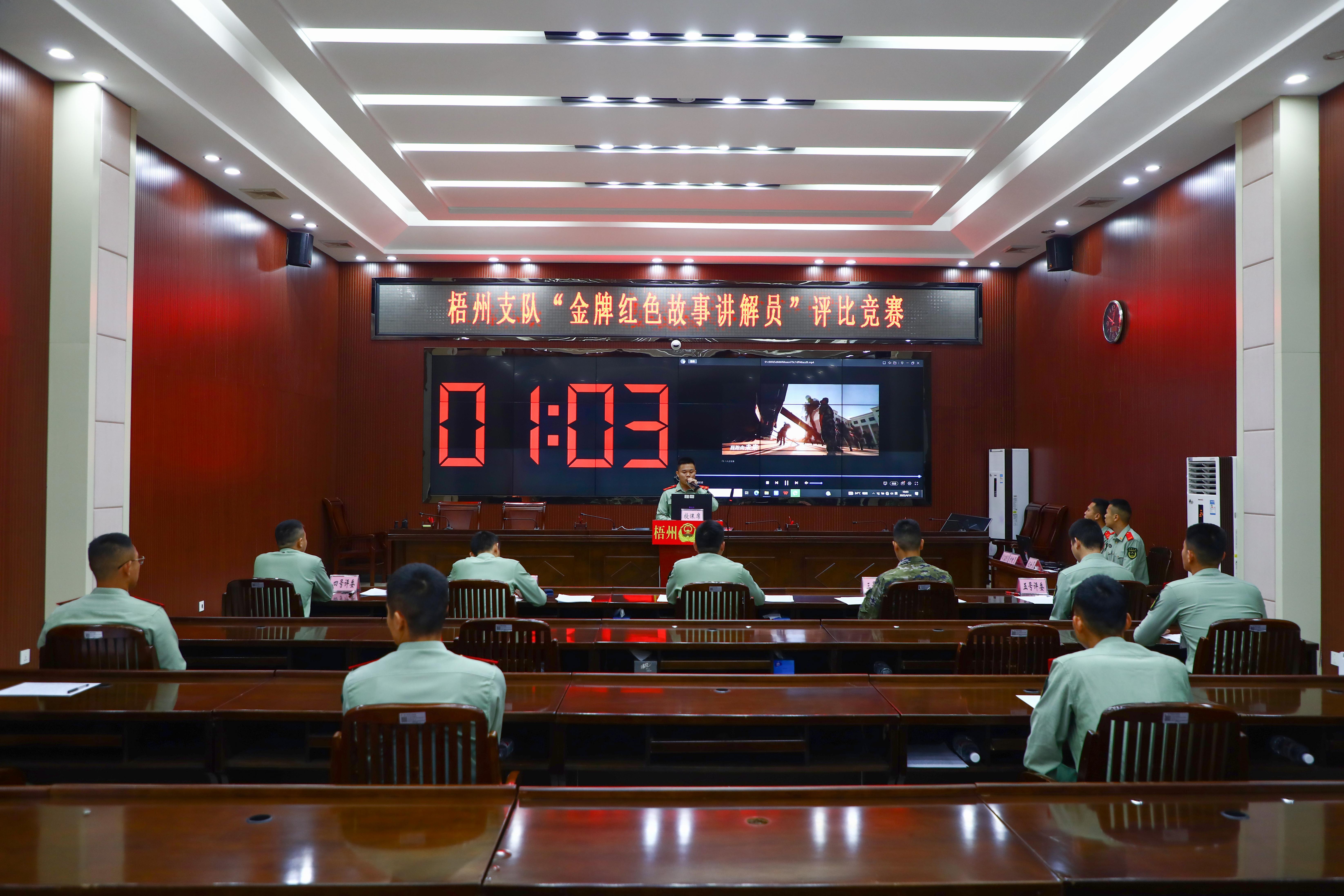 激烈的评比竞赛现场,气氛紧张而热烈。参赛官兵们精神饱满,依次登台。他们用富有感染力的语言,生动再现了梧州的红色历史,从韦拔群烈士纪念园到梧州市地委旧址,一个个故事扣人心弦。台下评委和观众全神贯注,沉浸其中,不时爆发出热烈的掌声。