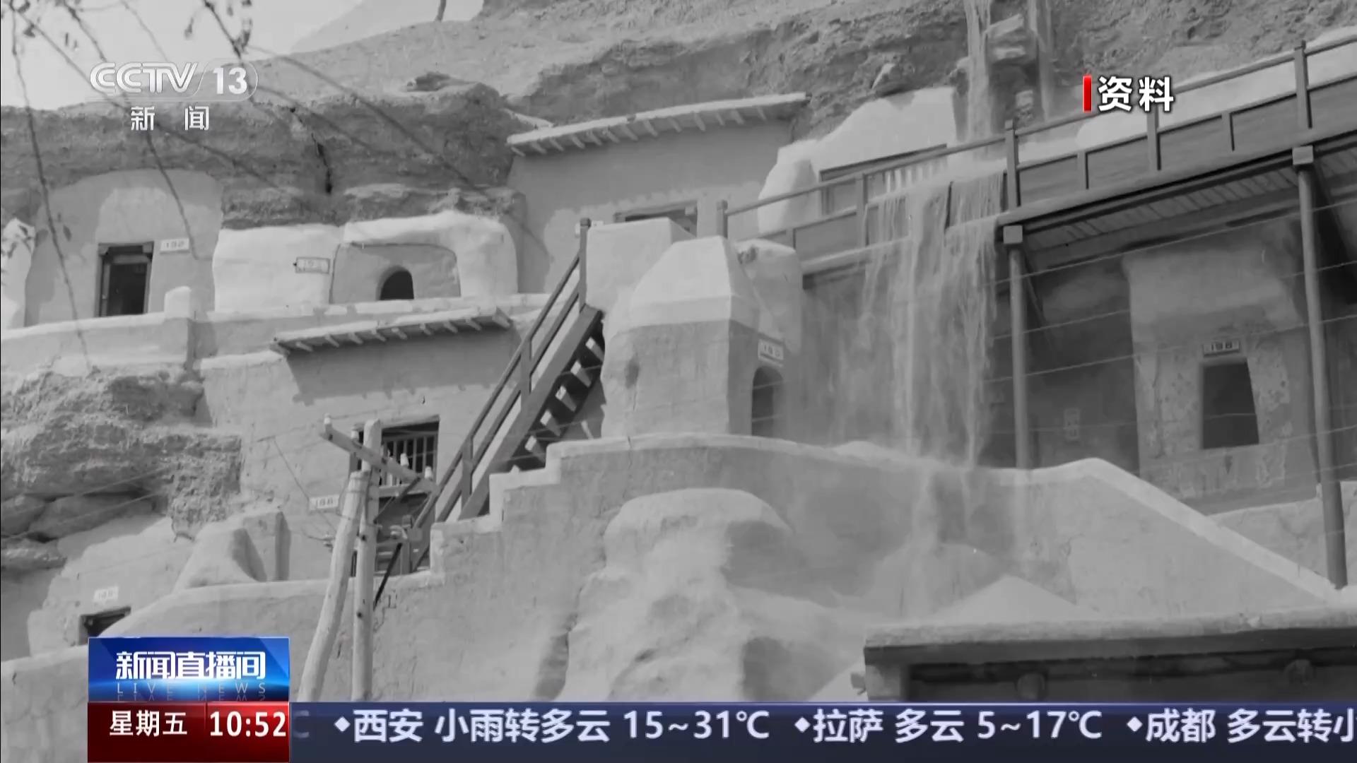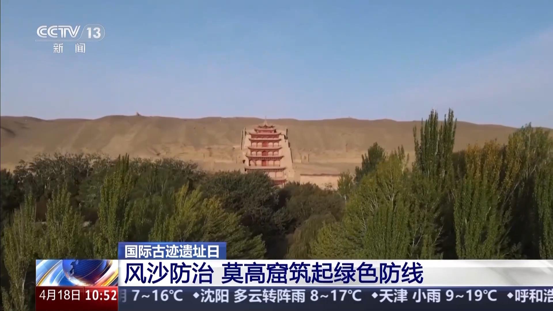 总台央视记者 刘璐璐:我现在是在莫高窟的窟顶,身后距离我一公里的地方就是莫高窟的崖壁,我们看到的草方格、植被和尼龙网,这些防护措施织成了一张巨大的保护网,最大程度减小风沙对石窟的侵害。