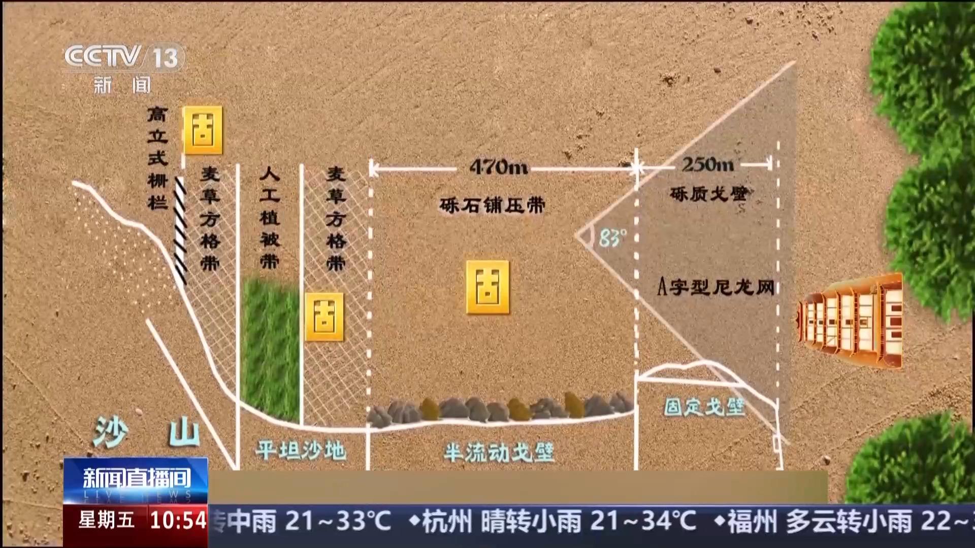 除了A字形防沙网,为有效阻断风沙侵袭,研究人员还在莫高窟窟顶精心构建了囊括防沙林带、草方格固沙带以及砾石覆盖压水等多重措施的综合防沙系统,使进入窟区的年积沙量减少了85%以上。
