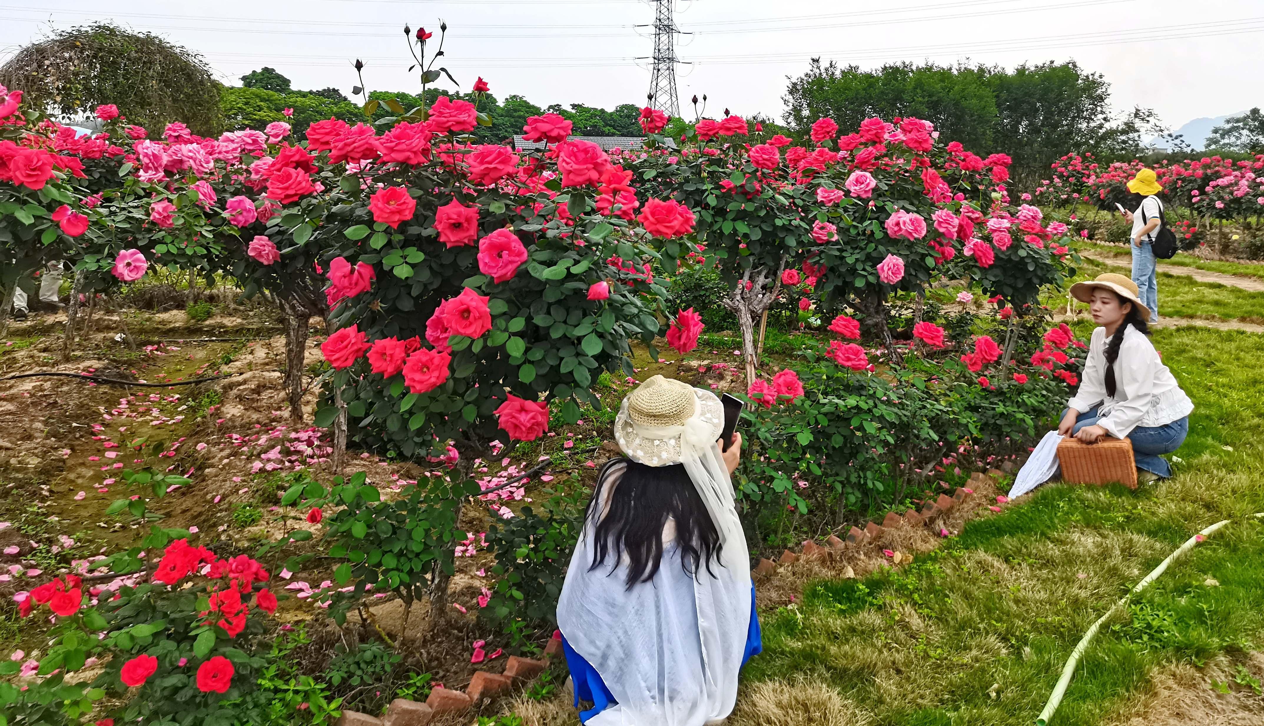 玫瑰园负责人丘习行介绍,玫瑰的盛花期在4月中旬到5月底,每年“五一”期间,都会迎来大批游客前来赏花。他还在玫瑰园内开起农家乐,把玫瑰醋、玫瑰酒和各式各样玫瑰做的菜搬上了饭桌。“五一”期间,该玫瑰园将举行广场舞表演、汉服+玫瑰旅拍活动、抖音摄影大赛、农特产品展销等玫瑰花节系列活动。
