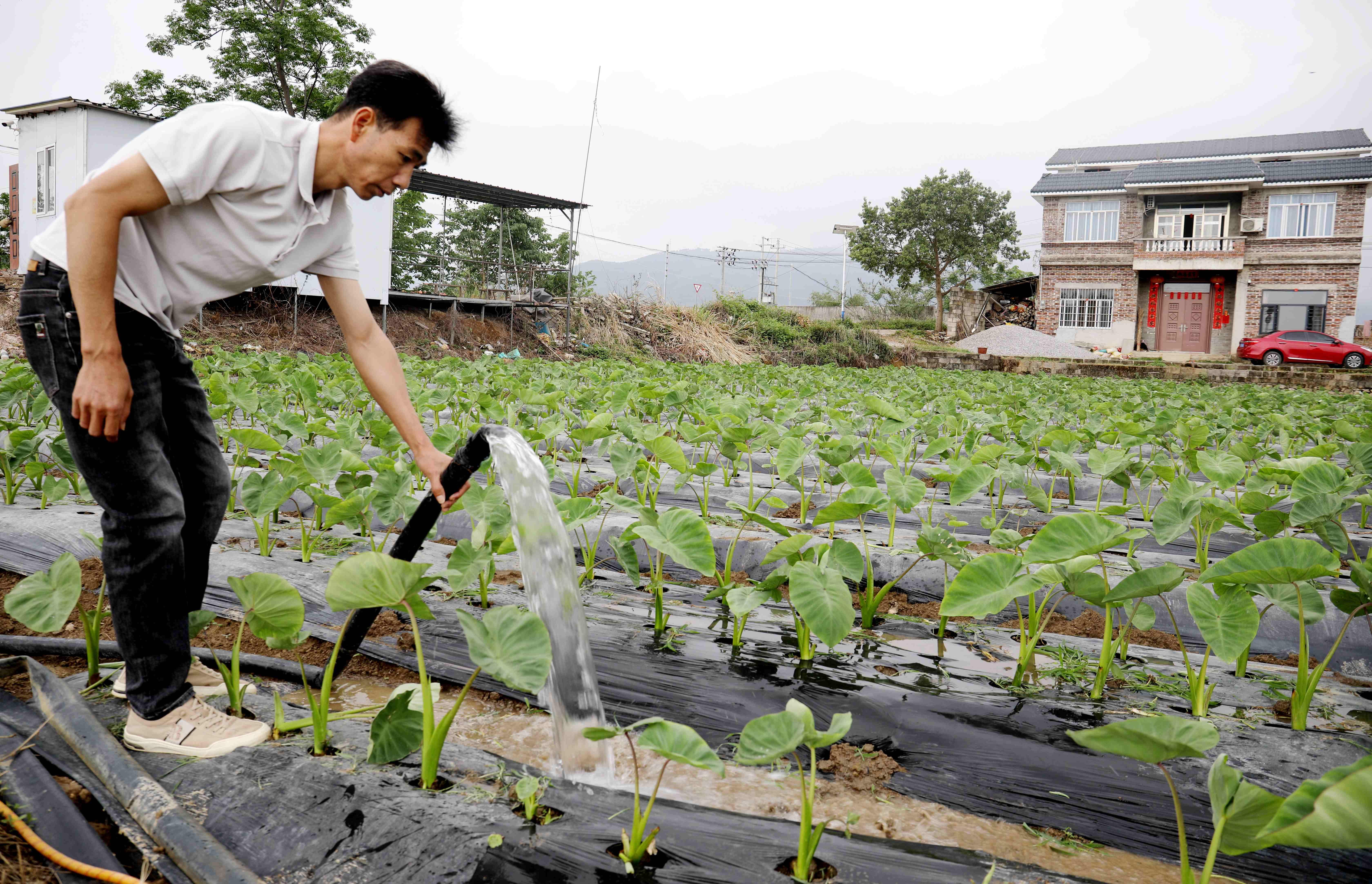 在鹅塘村30亩香芋种植基地,清澈的地下水从新打的井汩汩涌出,顺着铺设好的管道流向干涸的香芋田。“今年旱情比较厉害,影响较广,水稻、花生、玉米、香芋等农作物种植都遭受不同程度影响。”在基地管护香芋的鹅塘村党总支书记、村委会主任李意文说,通过清理灌溉沟渠、增打抗旱水井、调配抽水设备等措施,全力保障春耕用水需求。
