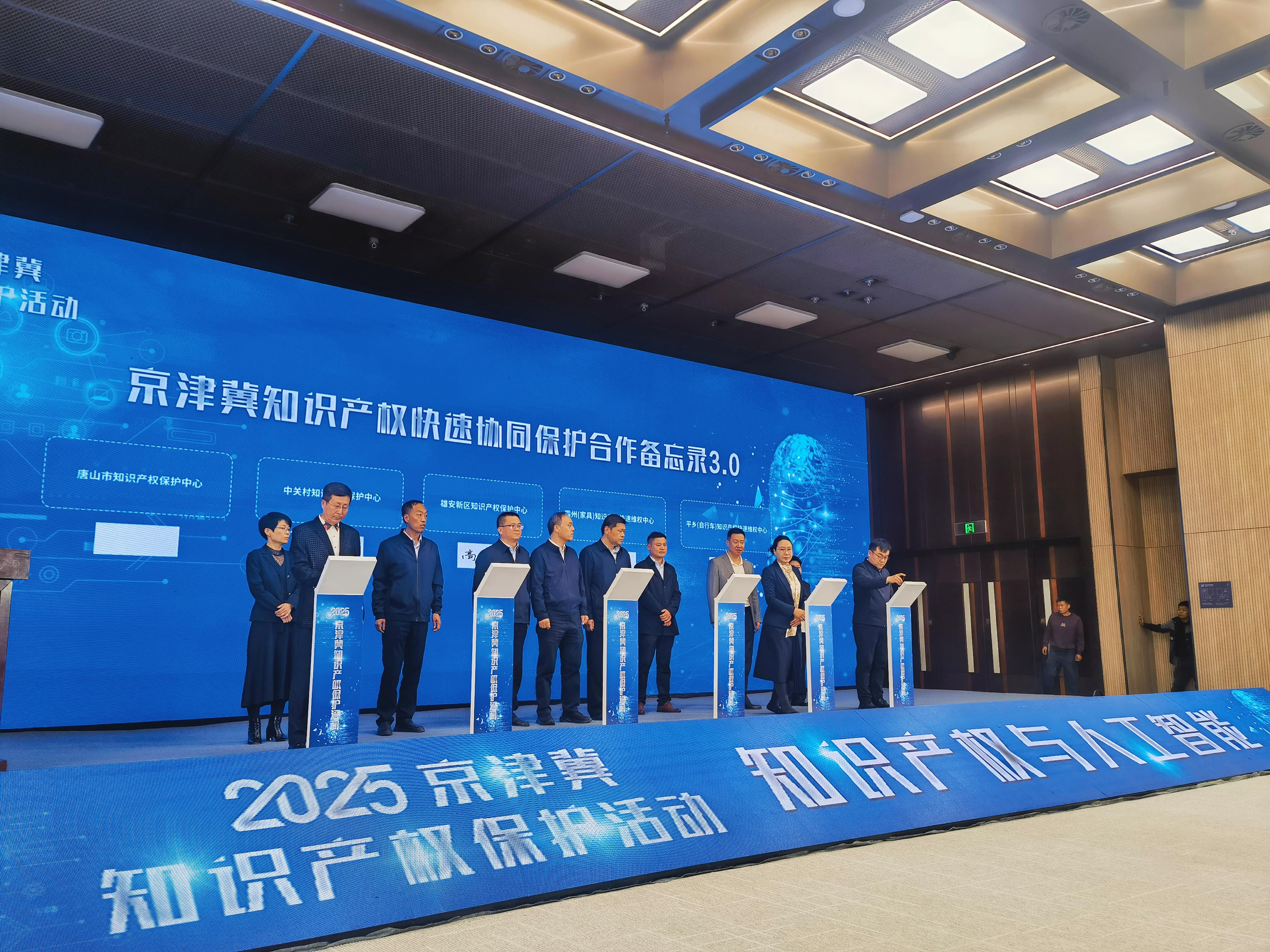 4月25日,2025京津冀知识产权保护活动在雄安新区成功举办。活动中,京津冀三地7家知识产权保护中心和4家快速维权中心共同签署《京津冀知识产权快速协同保护合作备忘录3.0》,标志着我国首个跨区域知识产权协同保护机制完成第三次迭代升级,正式构建起覆盖“严保护、大保护、快保护、同保护”四位一体的协同保护新格局。