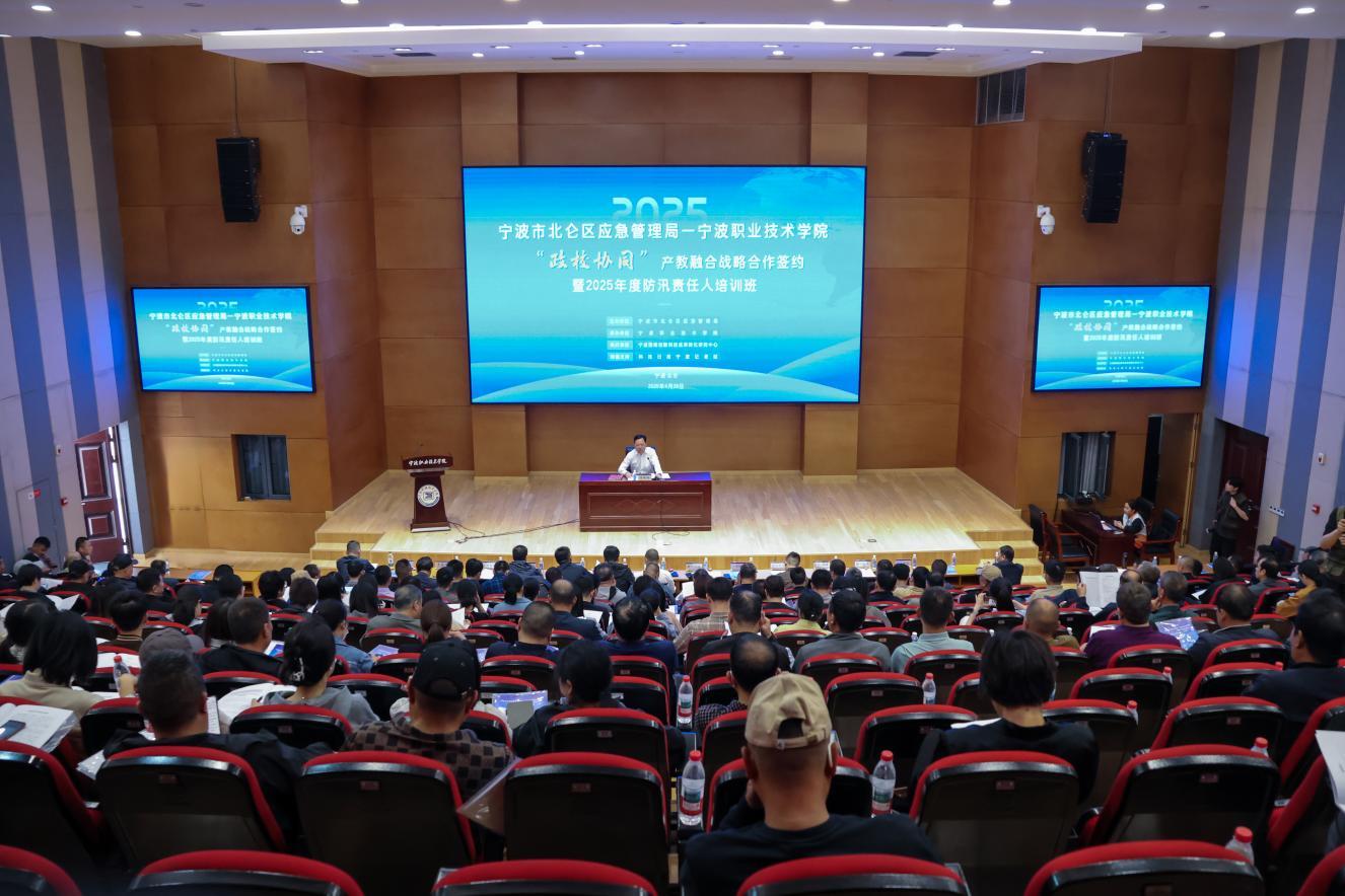 4月28日,政校协同产教融合战略合作签约暨2025年度防汛责任人培训班启动。此次活动由浙江宁波北仑区应急管理局联合宁波职业技术学院举办。
