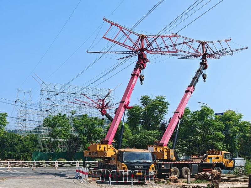 该装备巧妙借鉴雨伞伸缩原理,由汽车起重机、跨越架附件和跨越架伞型本体构成方形平台。施工时,汽车起重机将装备精准送至目标物上方,辅助完成跨越作业。