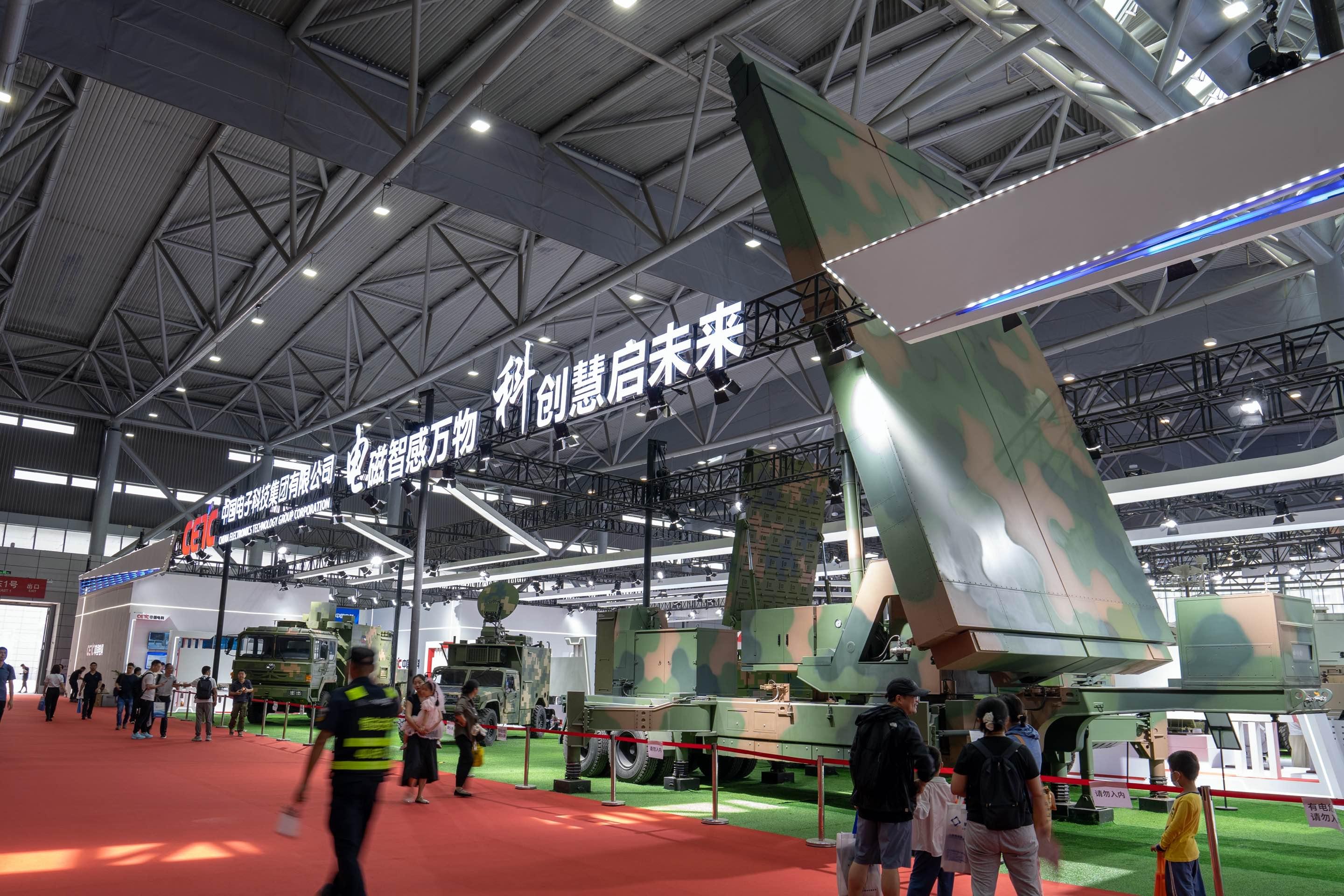 电磁对抗装备研发方面,中国电科可提供智能化、一体化、体系化的电磁空间对抗整体解决方案。在展区电磁对抗板块,电磁侦察、电磁杀伤和电磁防御等装备引人瞩目。