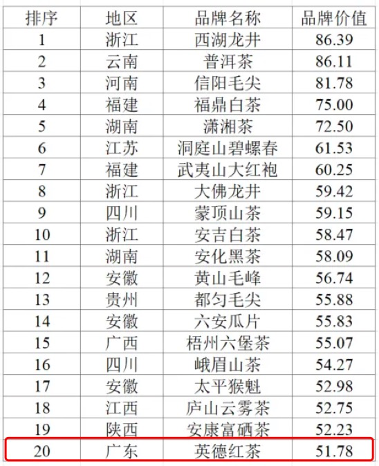 记者5月18日获悉,由浙江大学CARD中国农业品牌研究中心发起的“2025中国茶叶区域公用品牌价值评估”结果近日发布。英德红茶区域公用品牌价值达51.78亿元,增幅8.5%,首次位居全国红茶类第一。